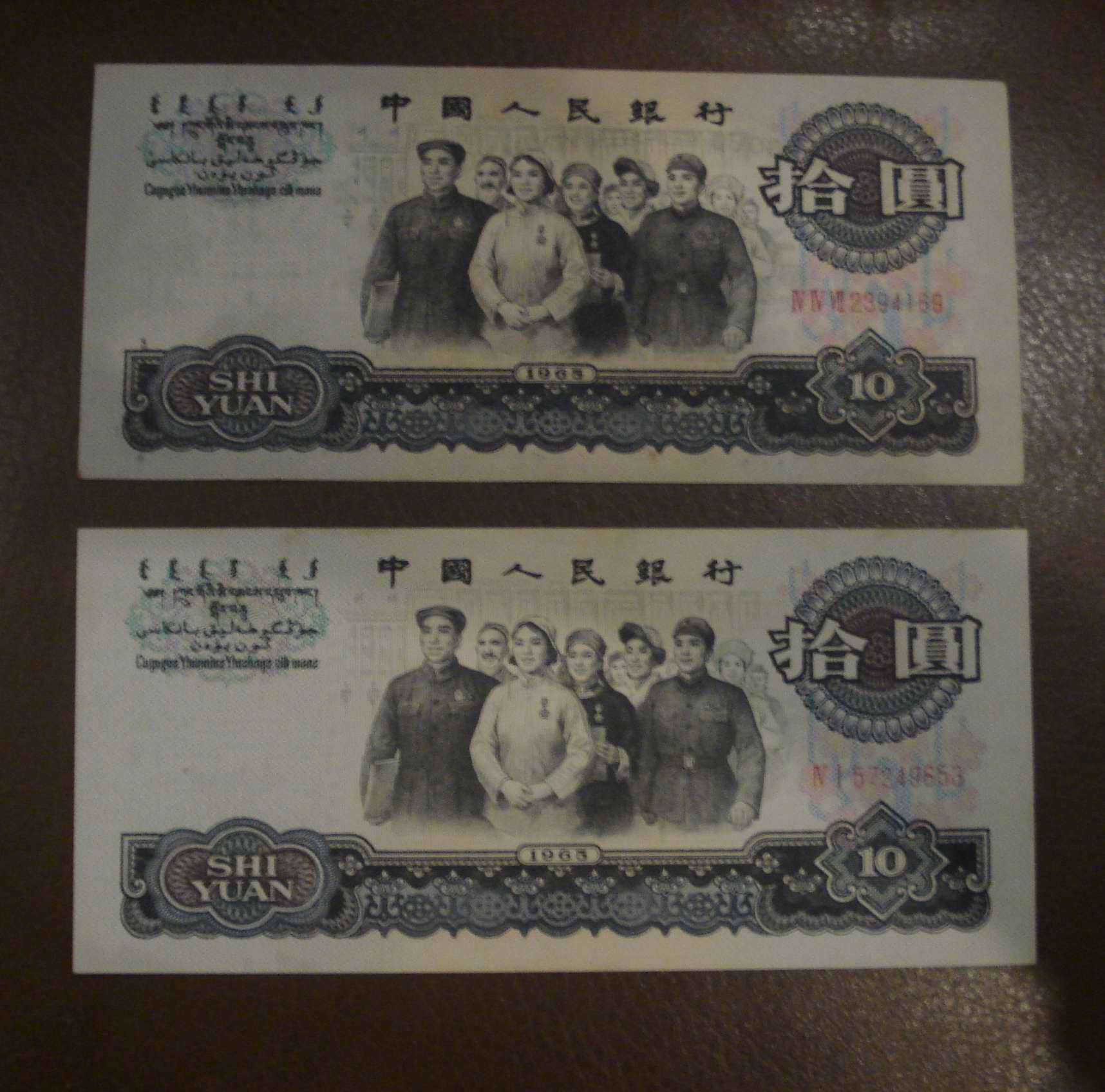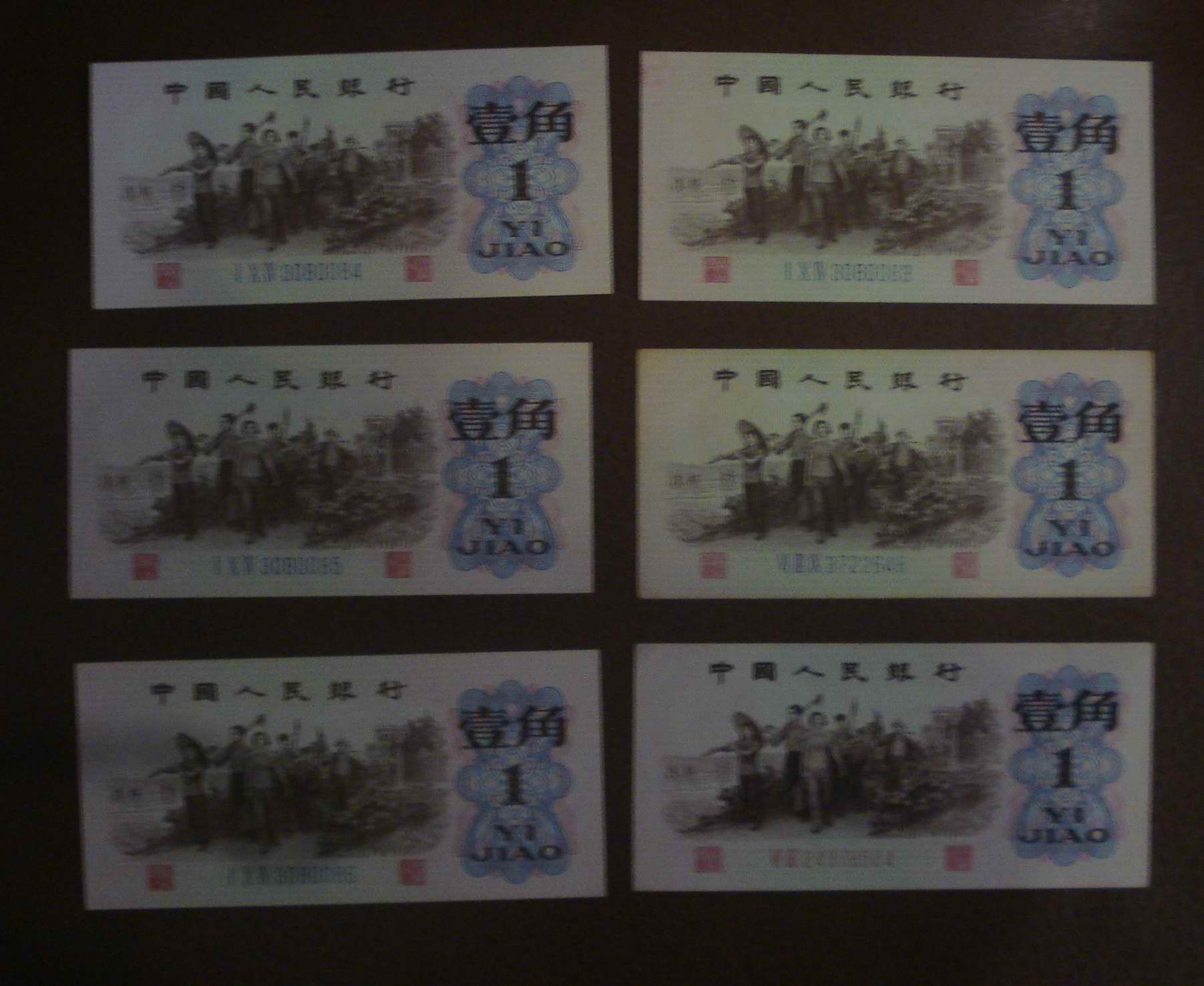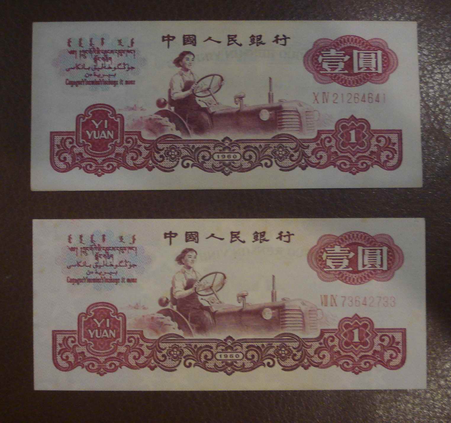 都是全新直板原票,大团结130元/张,拖拉机48元/张,纺织工人48元/张,大桥20元/张,一角9元/张
