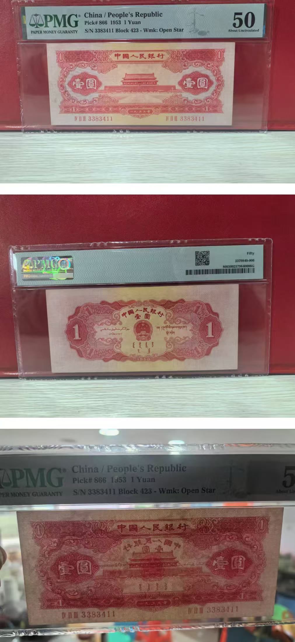 出售 红一元 直版原票 PMG50