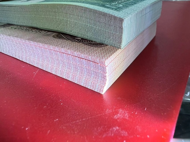 | -- 作者:满仓红 -- 发布时间:2024/8/20 17:56:00 -- 出805、902、961、8002刀货 代友出几刀刀货 961、8002两刀品绝无斑,四角尖尖 961 售400,CQ早期首发第二个冠号 8002 售380,GZ青绿美翠,其中有十几张金屋藏娇吧,荧光很亮 805、902两刀有瑕疵 805无347尾801多彩, 售1800,正面张张有特殊油墨(不是斑),背面几张有点黄,其他地方无斑 902无47 售1350,就背面有点黄,其他地方灯下无斑,纸币干净 |