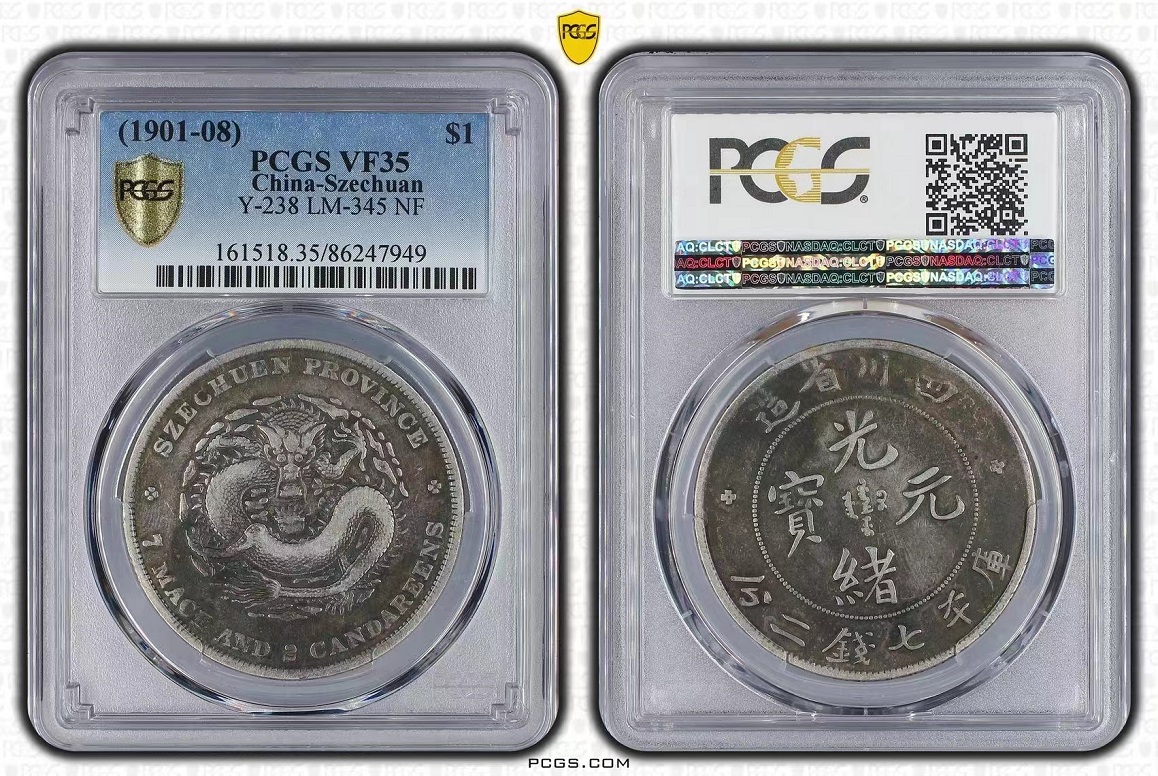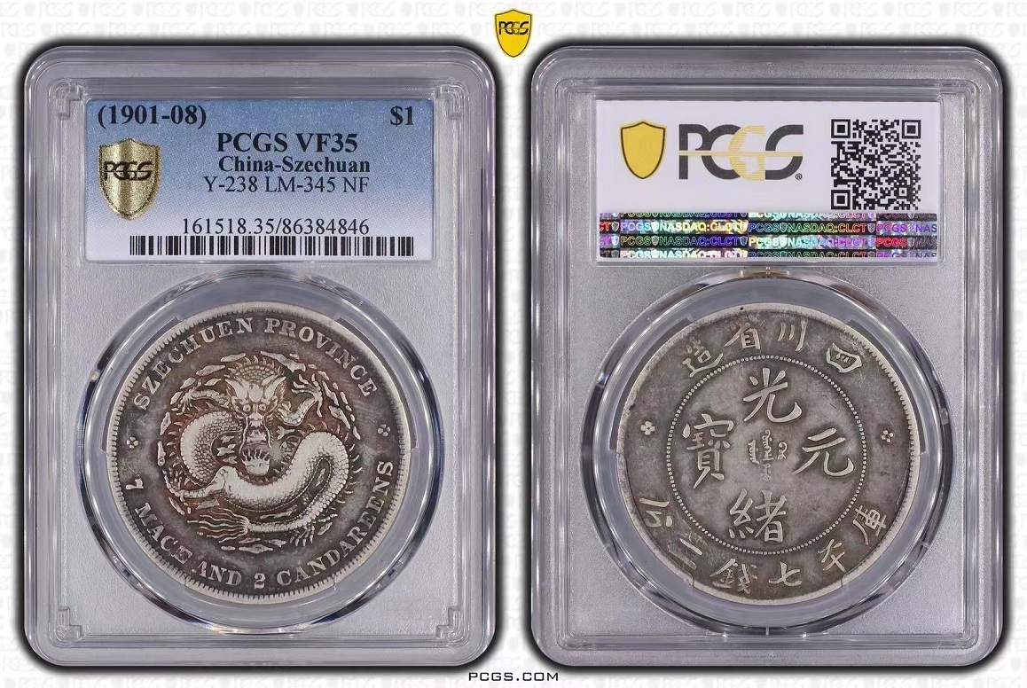 PCGS盒老酱彩35分四川光绪龙洋两个,8900/个
