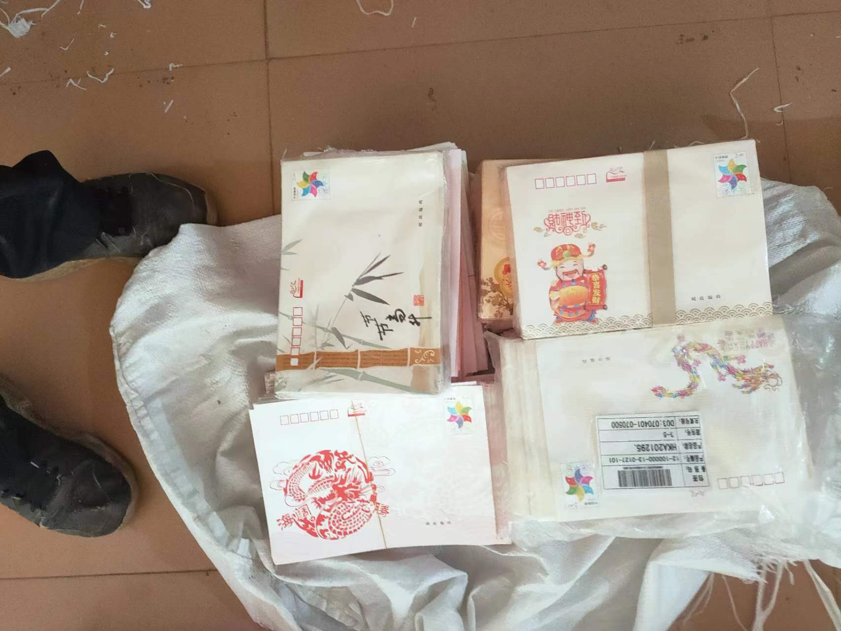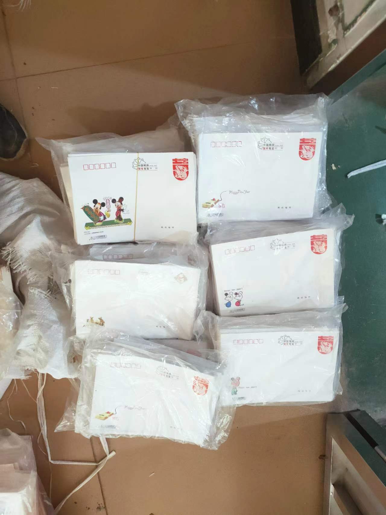 好品的2.4的完整版封一起10000个,大小是正常普通尺寸,按种类分五个单项,每一个单项不拆一起走,可以拿任何一个单项,二,1800个无地址的,单价0.53元一个,大多是同一个系列,大多邮资图一样,左下图案有的不同,都原包,可能少数袋子破小口。封后面最底下方有湖南...的小字。三,4700个无地址的,单价0.54元一个,都是同一个品种,都原包,可能少数袋子破小口。封后面最底下方有湖南..的小字。四,1100个国版,单价0.57元一个,有好几个品种,都原包,但大部分数袋子破了。五,2400个国版,单价0.6元一个,都是同一个系列,左下的龙图有的不同,都原包,可能少数袋子破小口。,,可能多处同售,双方确认有效,附近的省份包邮,远地邮资各半