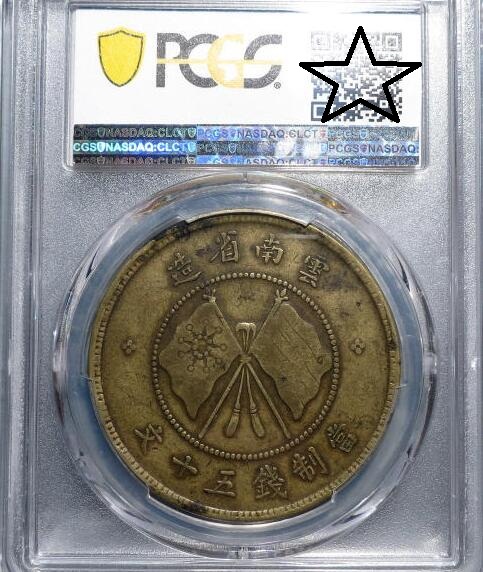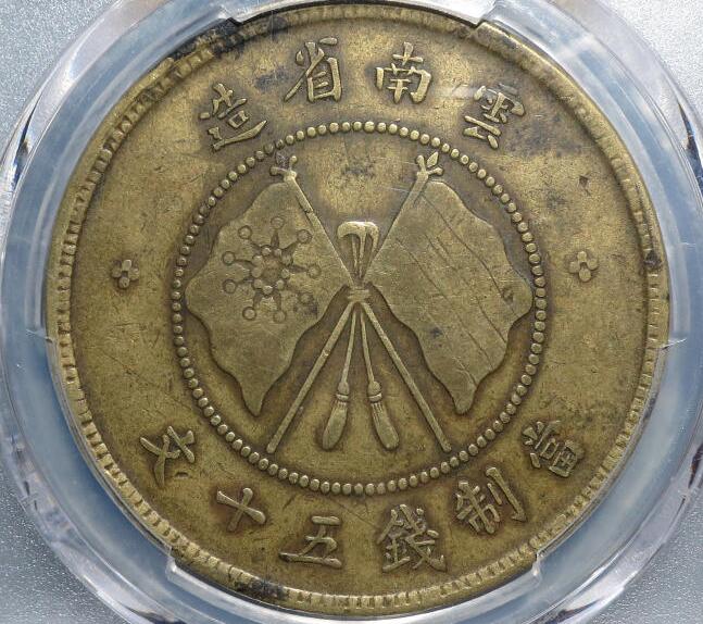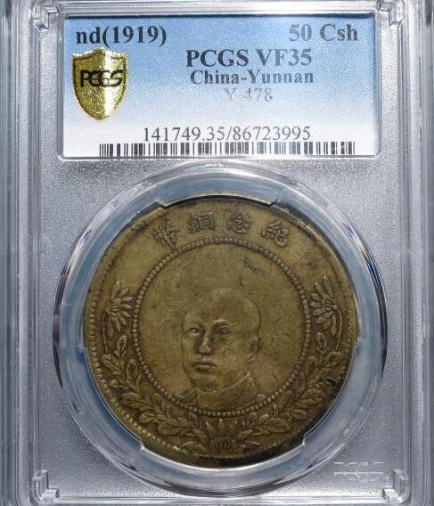 -- 【永久包老包真】PCGS VF35云南唐继尧五十文黄铜元