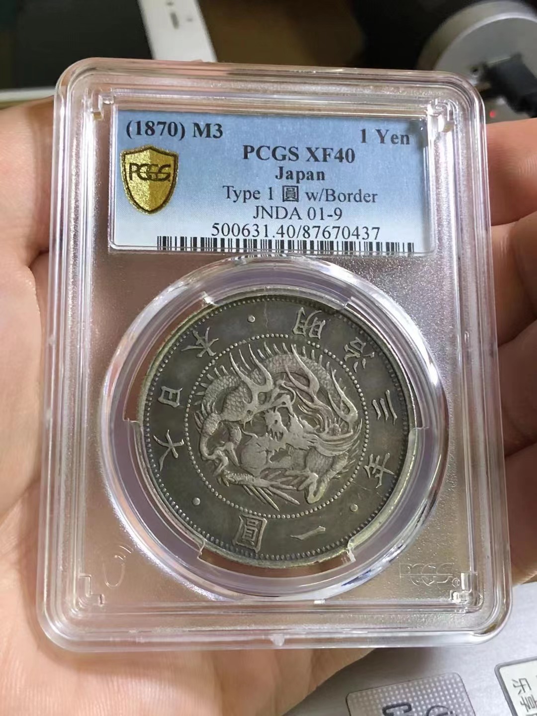 PCGS XF40分 好品传世老包浆 稀少1870年 早期明治三年 旭日壹圆龙洋银币 包顺丰