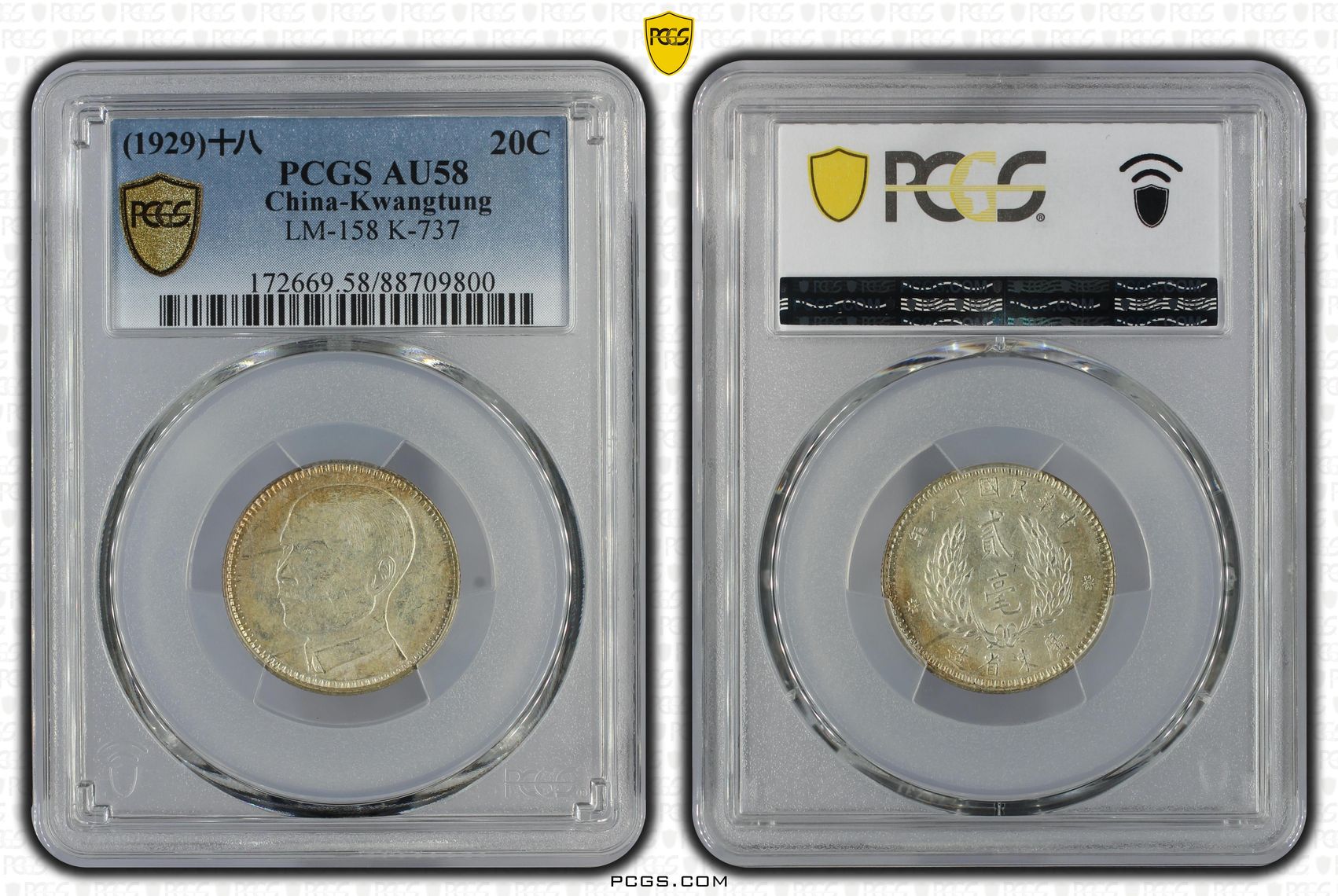pcgs au58五彩孙像十八年贰毫1枚