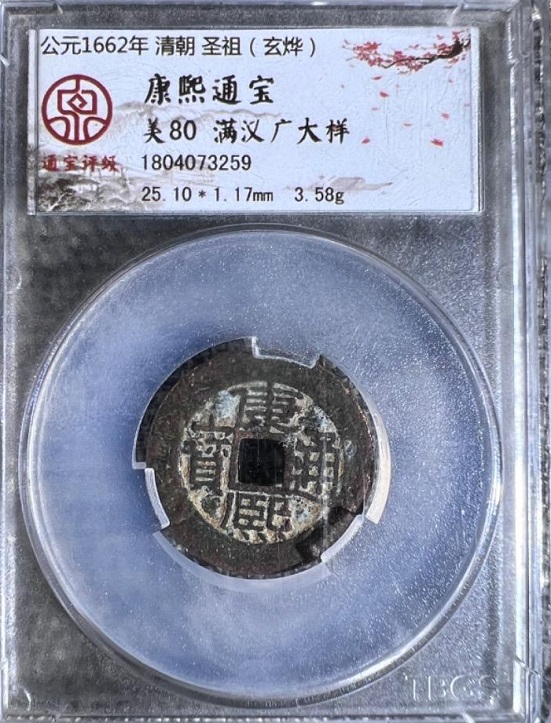 康熙背中广,,穿囗上月,囗下星,非常少的品种,玩康熙钱的版别不可缺的版别