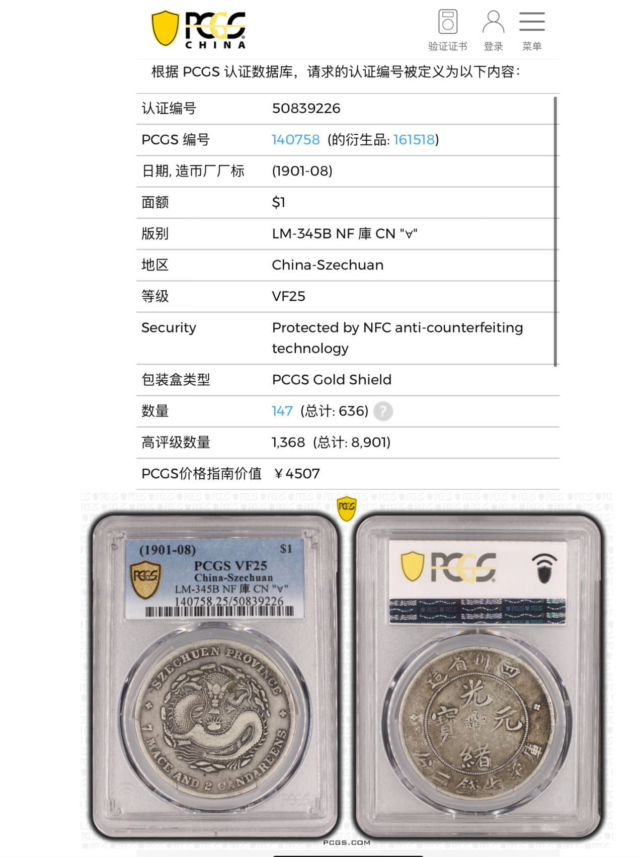 -- ★3600元出 PC25分 原味好品 四川光绪元宝