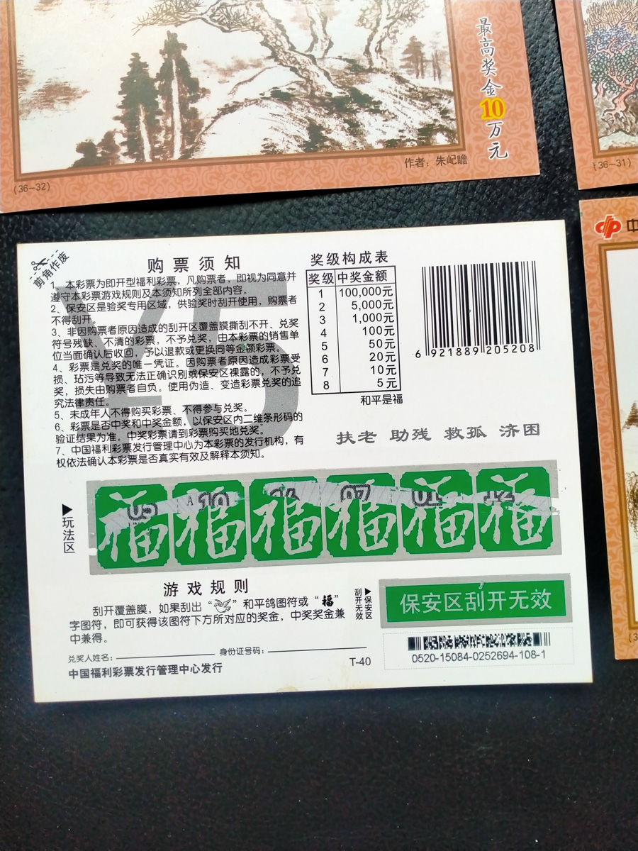 彩票尺寸:长12.5cm,宽10.6cm