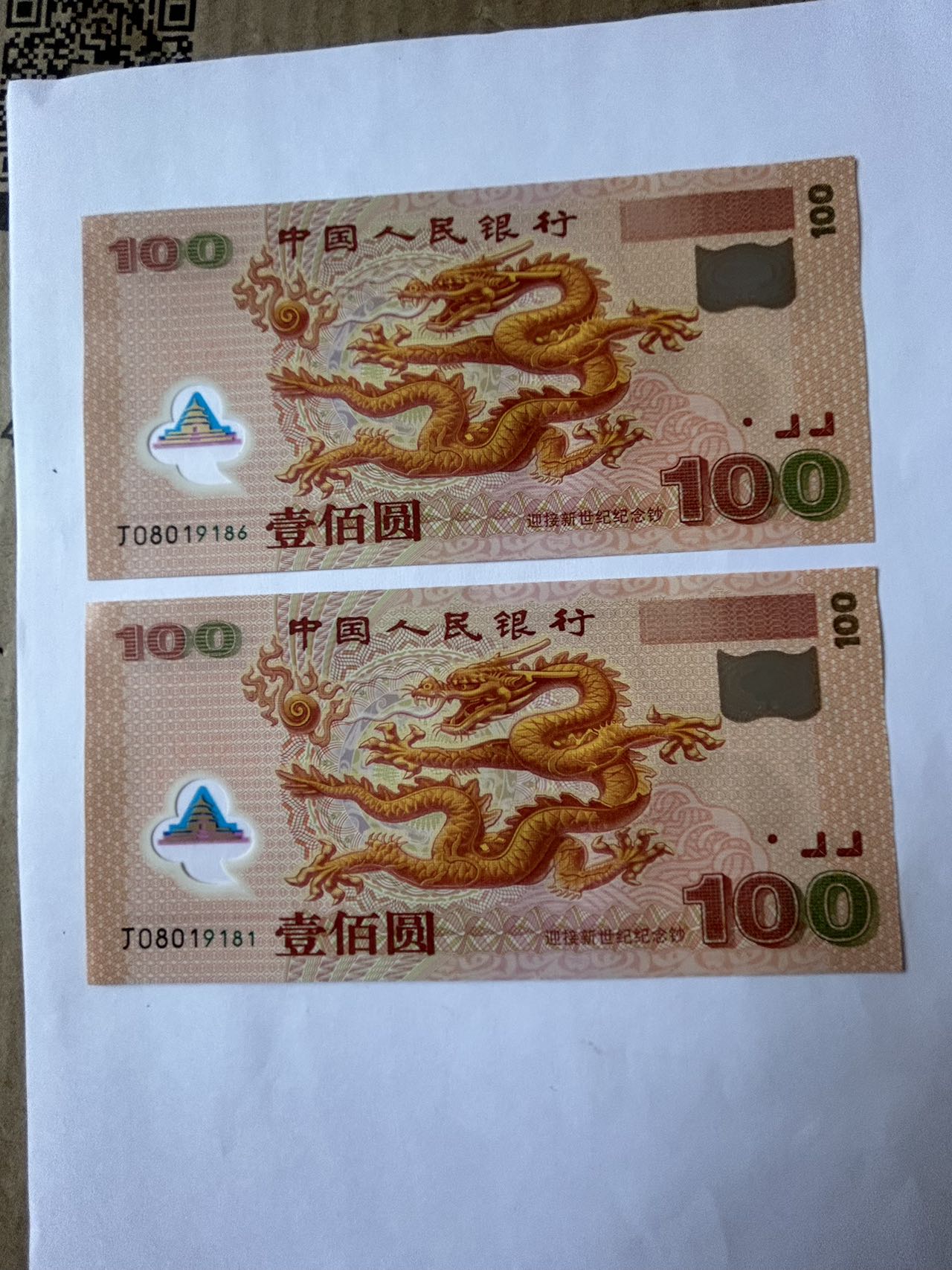 售龙钞倒置号4张
