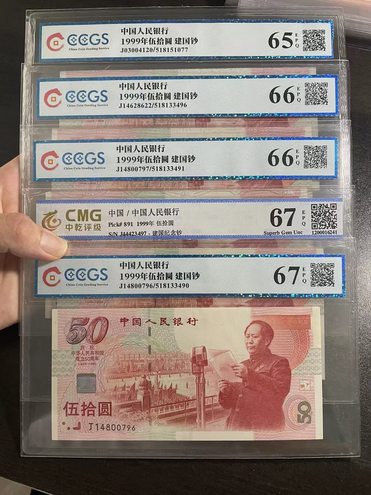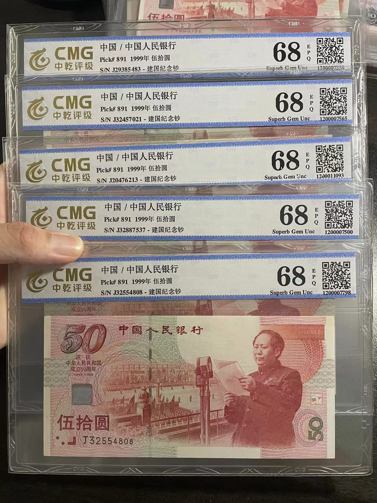 店里刚收的,建国钞10张,70小黄钞3张,一枪打!
