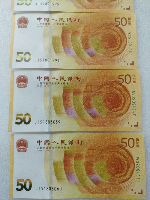 70钞151801962,151801993/151801995/1518019961年份票4枚,151803059,151803060(有原始月牙痕)6枚合售,品好,6枚通走,528包邮,如图