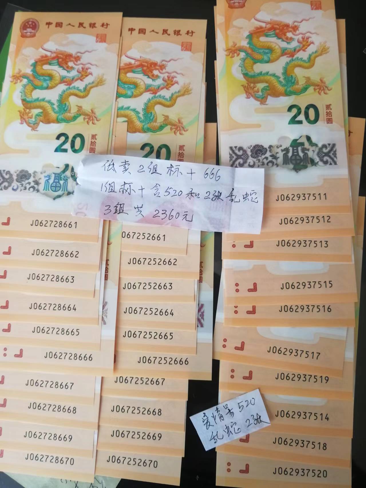 -- 低卖小龙钞3组标十含666.520乱蛇号