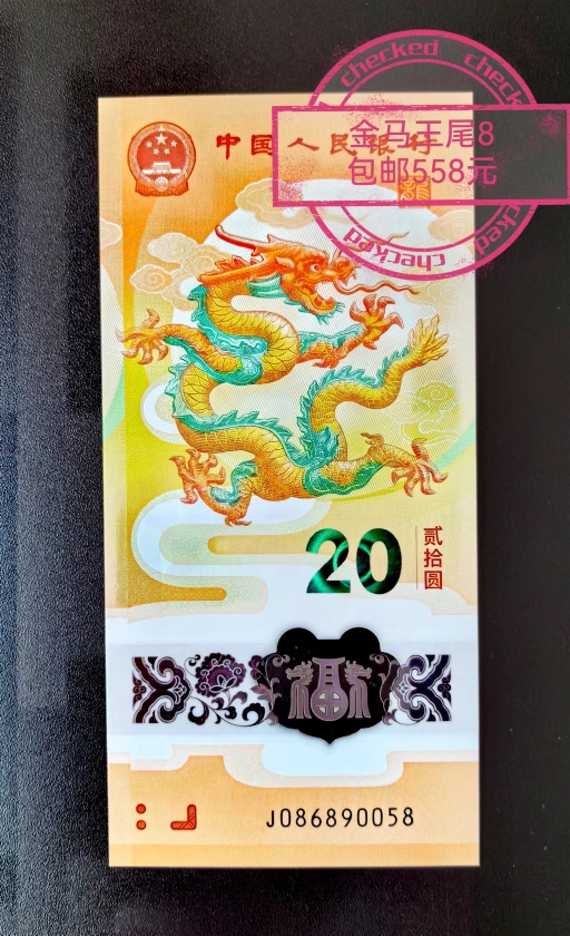 -- 【小龙钞】金马王尾8一枚