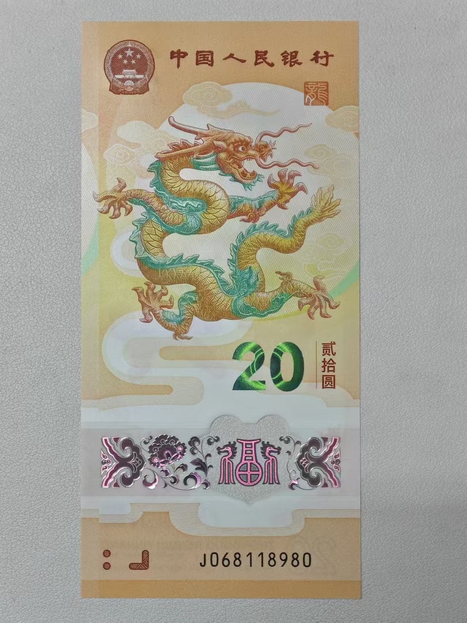 售 小龙钞 五福倒置号 一张,J068118980