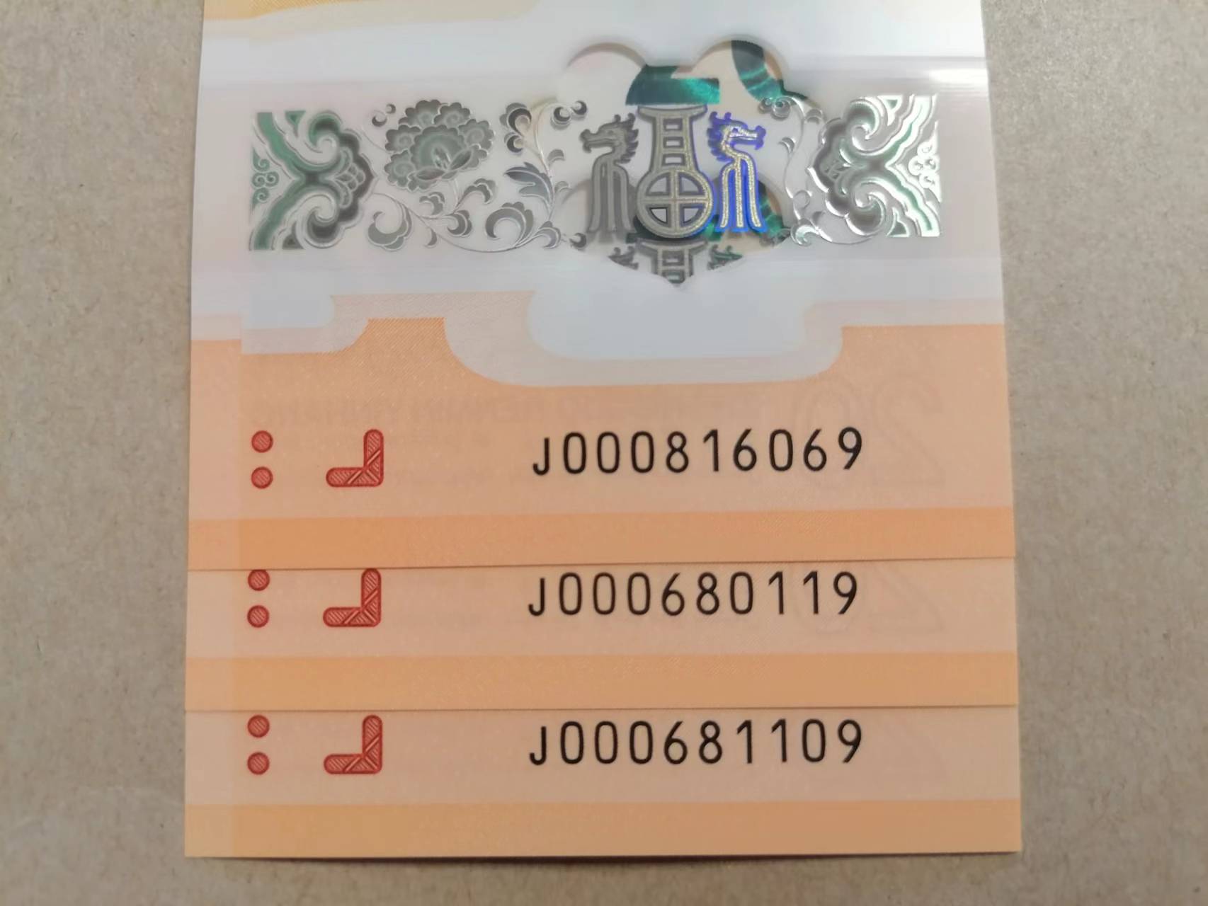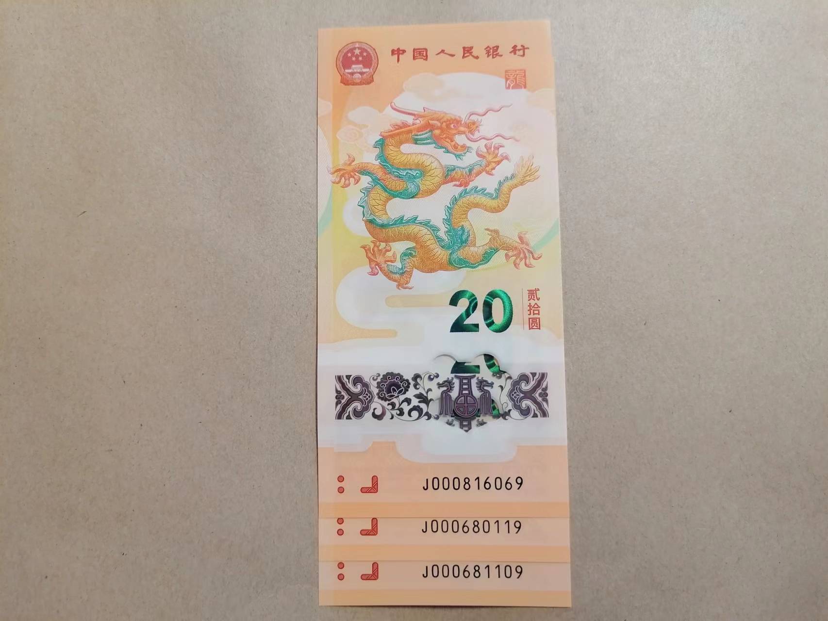 出生肖龙钞小司令倒置3张