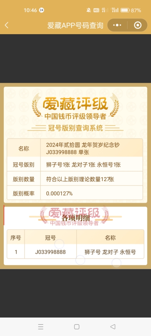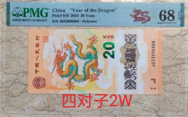 -- 卖存世量127张的小龙钞PMG68分四对子尾8888