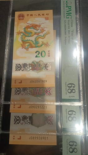售美评68分小龙钞朦胧号,5张。