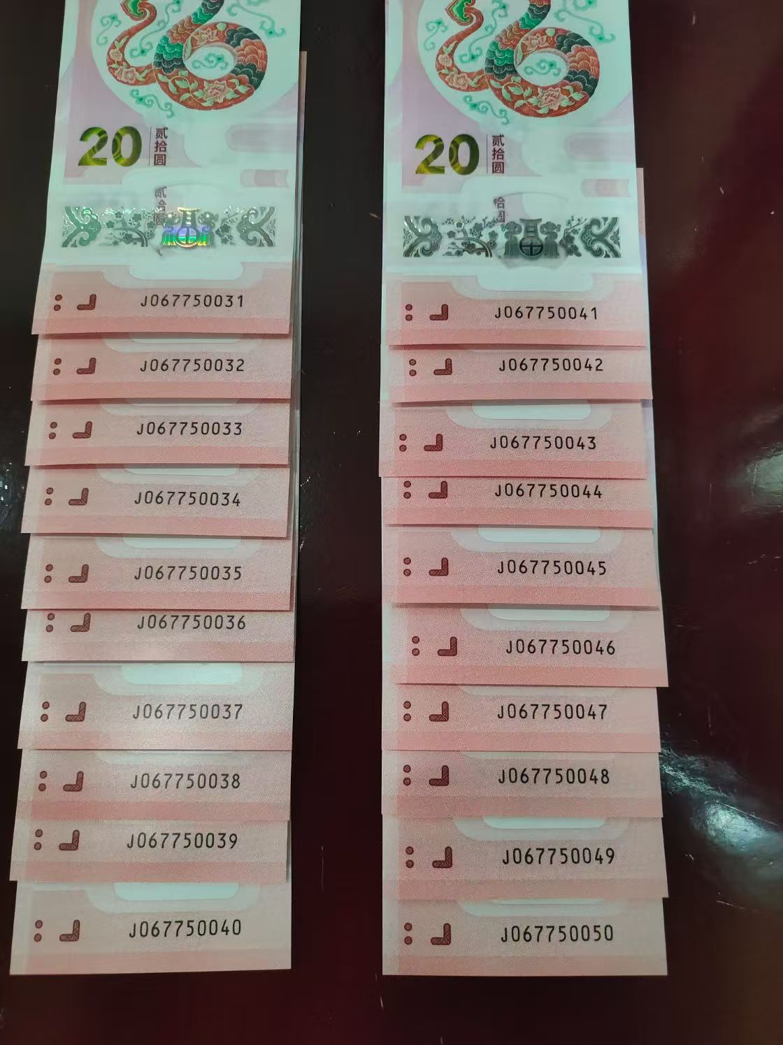 -- 出蛇钞标20连号