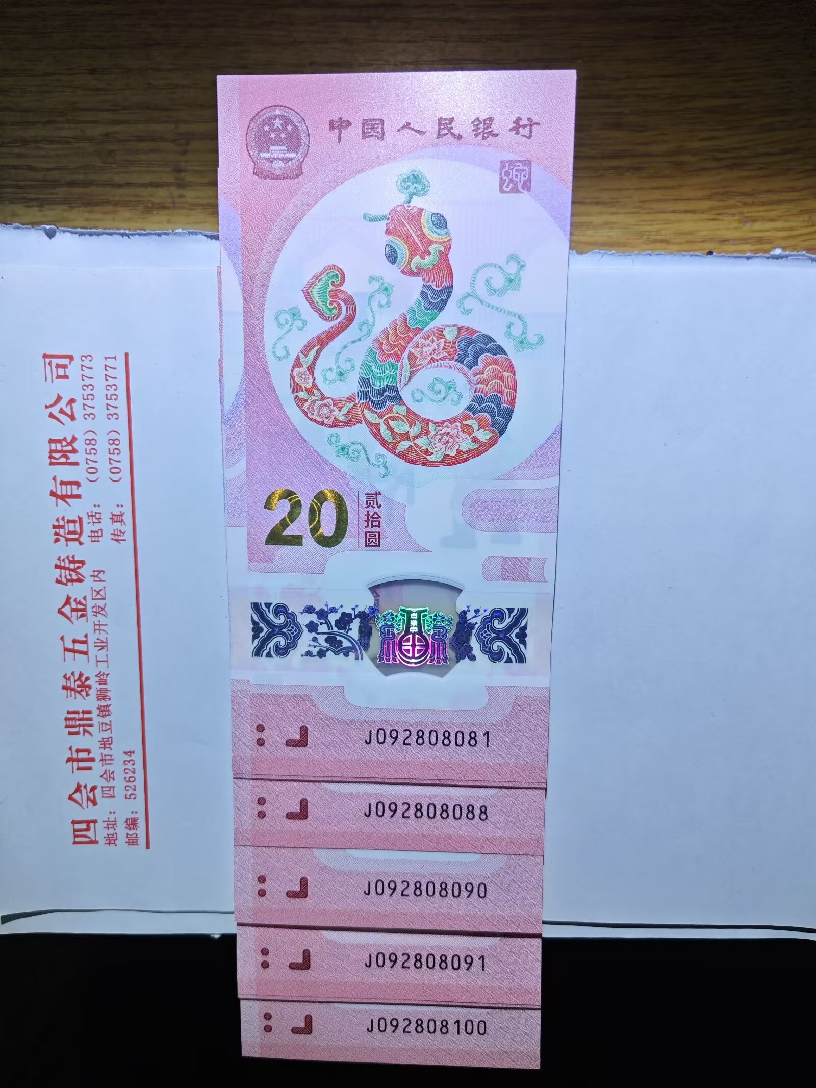 蛇钞0289 标20连号,20连号一起出, 4980元, 包品包顺丰