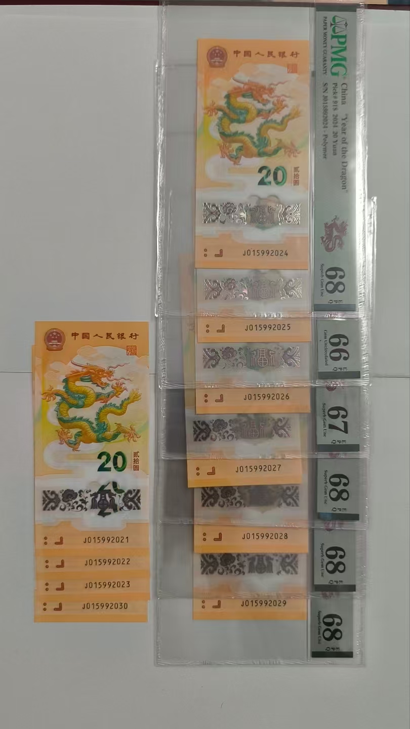-- 出小龙钞pmg68分无347尾2024龙年标十一组
