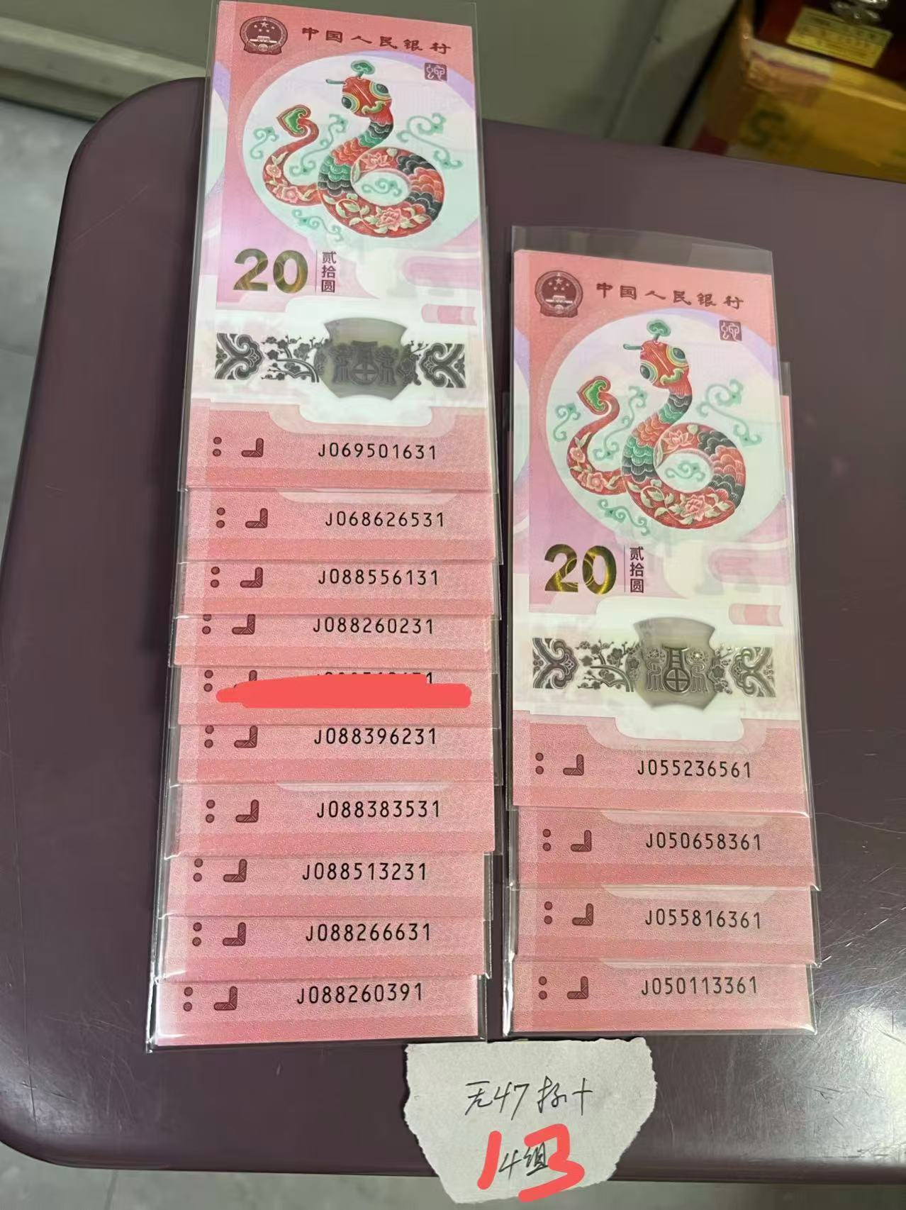 13组蛇钞无47标十。尾31 61 391,一起每组620元,款到三包到手。