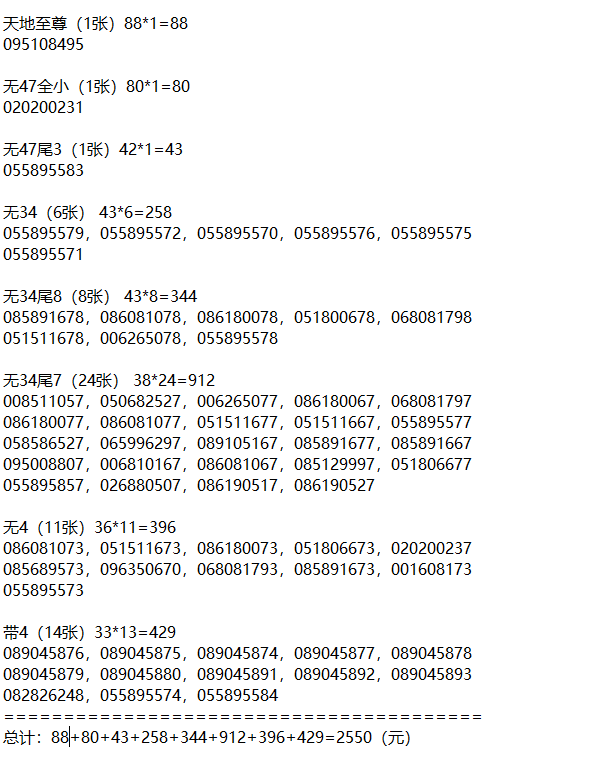 -- 88出蛇钞天地至尊,通走散钞,无47,无34