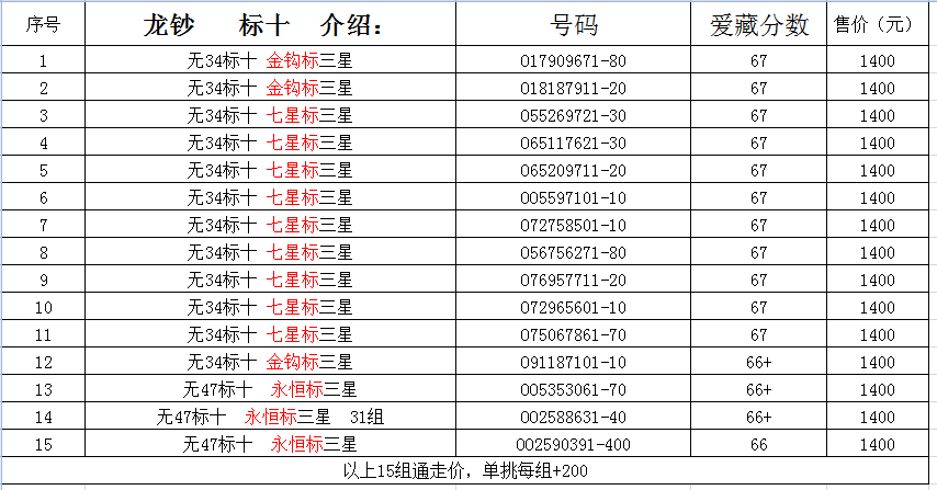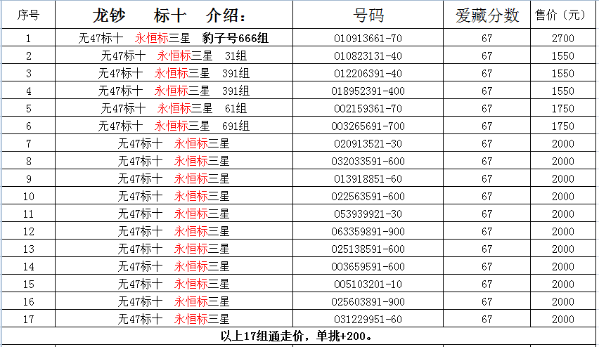降价出龙钞爱藏评级无47标十无34标十67+和67