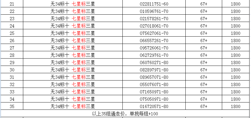 无34的35组和无47的67+的售出撤