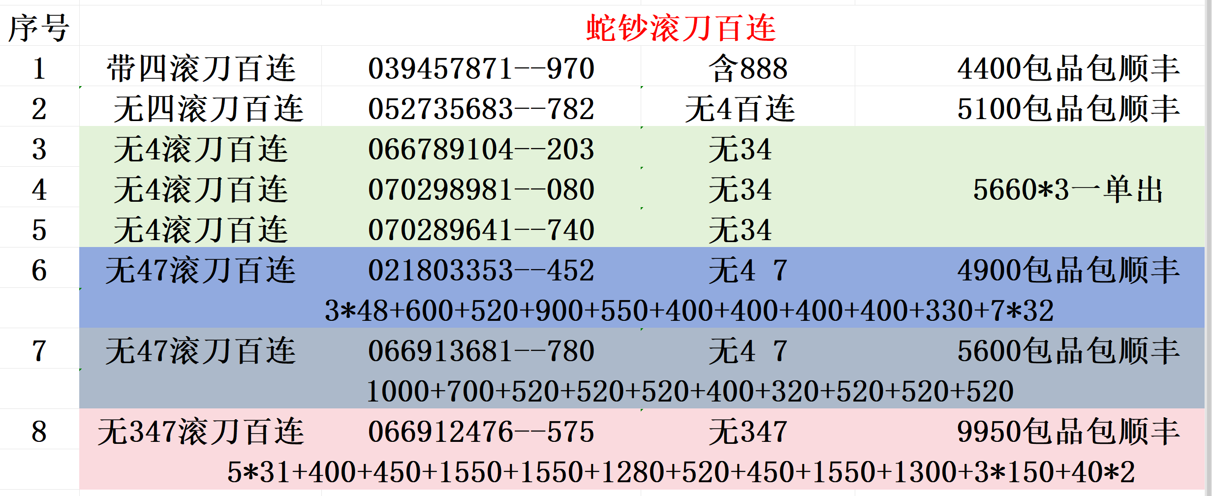 ————售蛇钞滚刀百连————号码如图