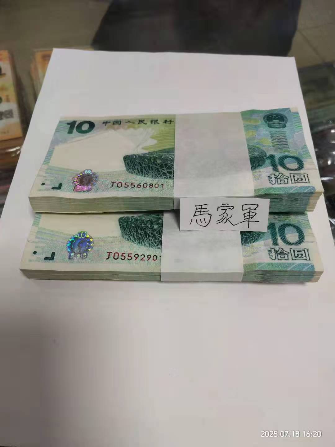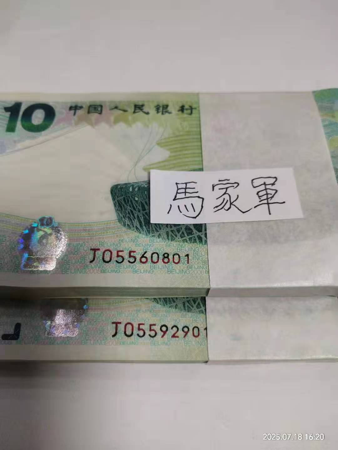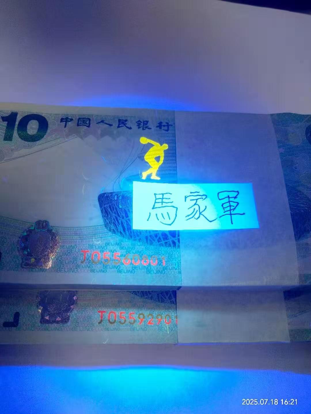 奥运钞金马王号05560801售价28.8万,05592901售价25.5万,全品无斑!