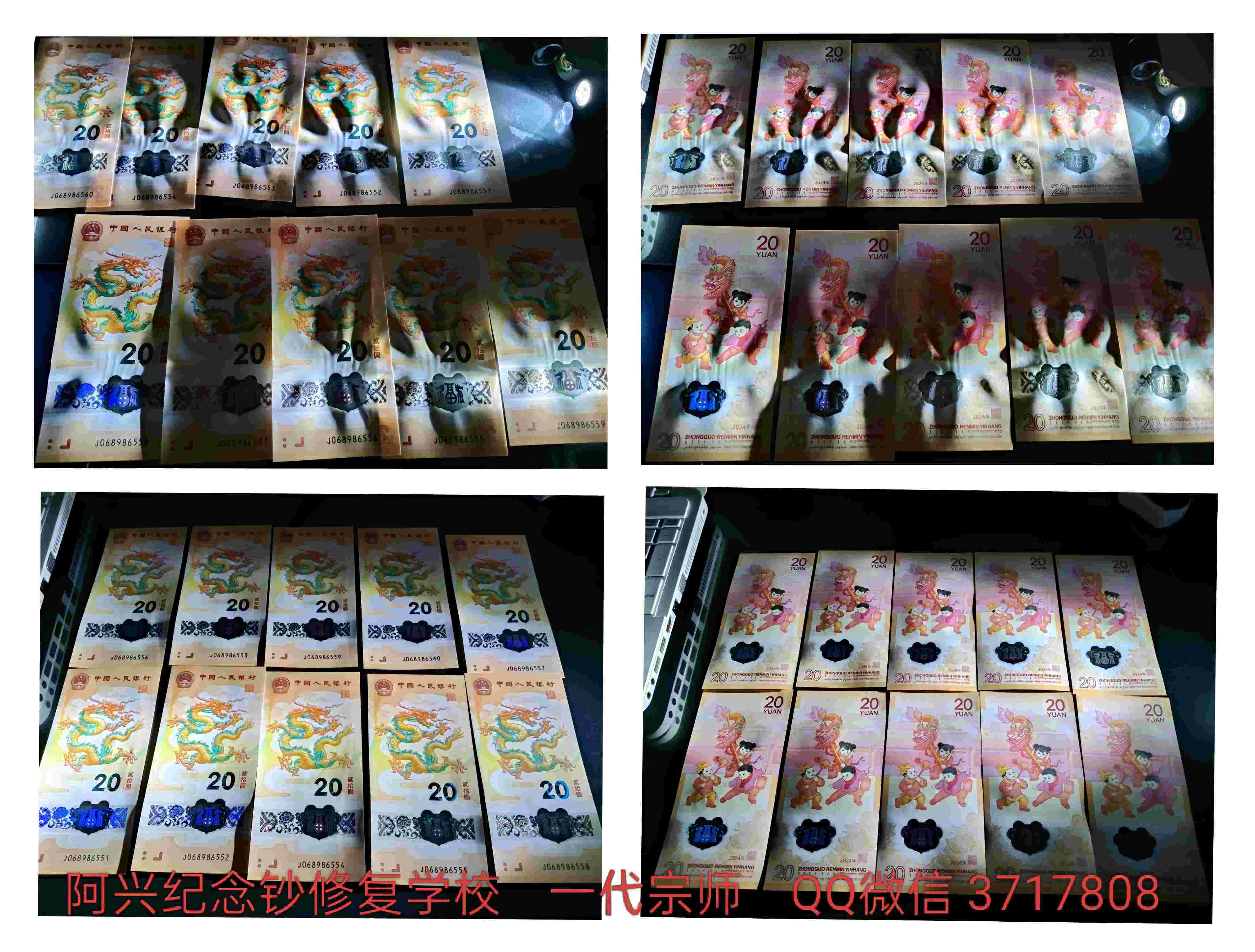 全国第一修钞!客户终选,学员之家,无法超越。专业修复疑难杂症,评级费八折,修复费可商量,一尘老用户,咸鱼满级,群500个,信誉无忧,回头客不断。大波浪、大S弯、硬折、月牙印痕、等严重故障,全国解决不了的最终都跑到我这里来!快手、抖音、视频号、同步更新视频,全网搜索《阿兴纪念钞修复学校》即可,QQ微信:3717808. 百余种修复方案,全国第一,没有修不了的钞。十二生肖钞修复人才孵化基地:全国招收修复学员,顶级教学,尖端精修,真技术不骗人,不用您干活来了直接教干货,免费住酒店客房,免费吃高端自助餐24小时,毕业包成手,自由就业岗位,保接单赚钱,终身硬技术无限增值,从此无需再花1分钱修复费,什么钞可以买、什么钞可以卖、的问题,达到在网上靠眼力买毛病钞自己修复出分赚钱的新赚钱方法!只要你有真技术、未来10年尽情赚米!—————— 阿兴老师. 致敬有缘人的一封信