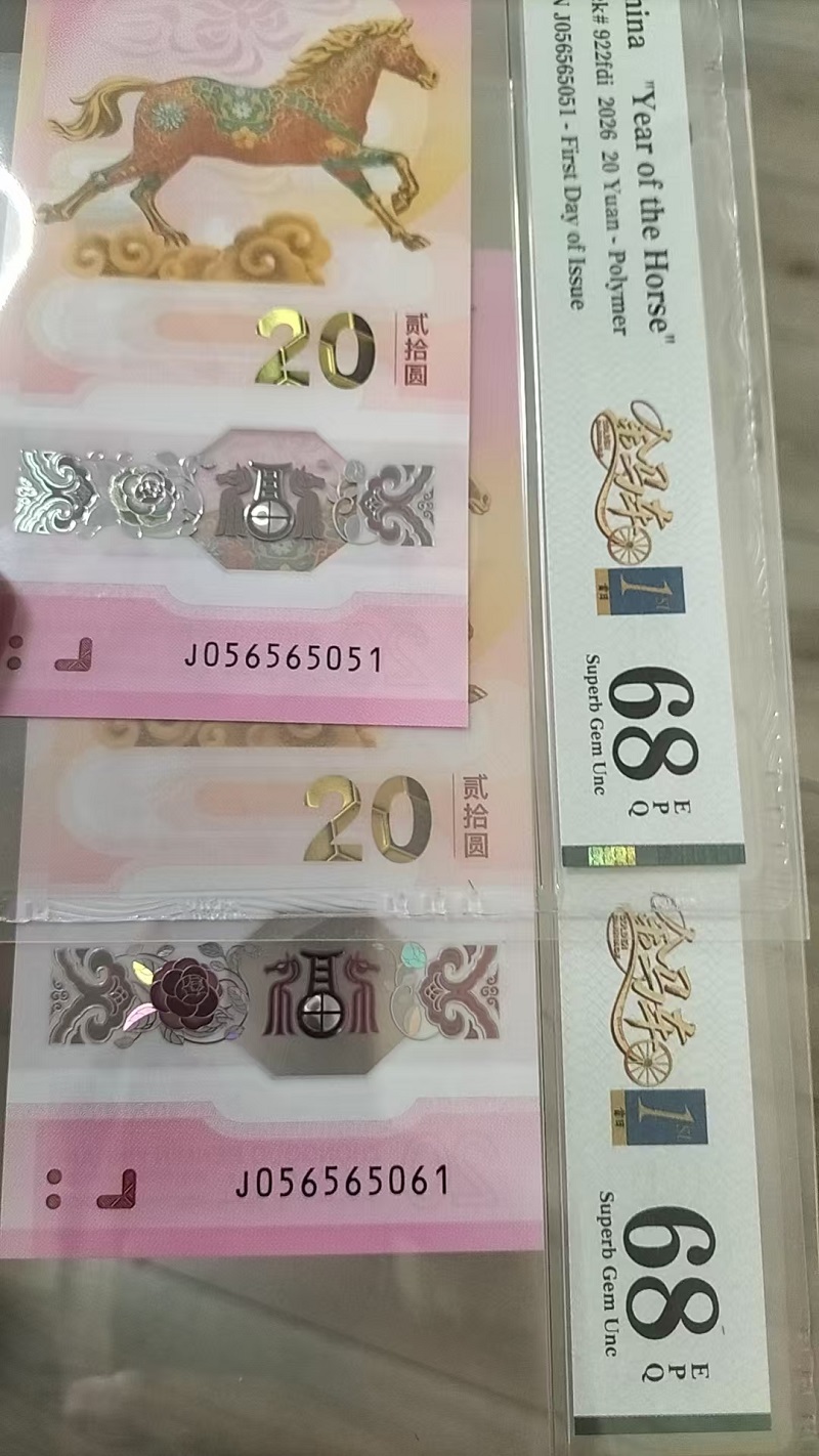 -- 出马钞金马0156两张 PMG68