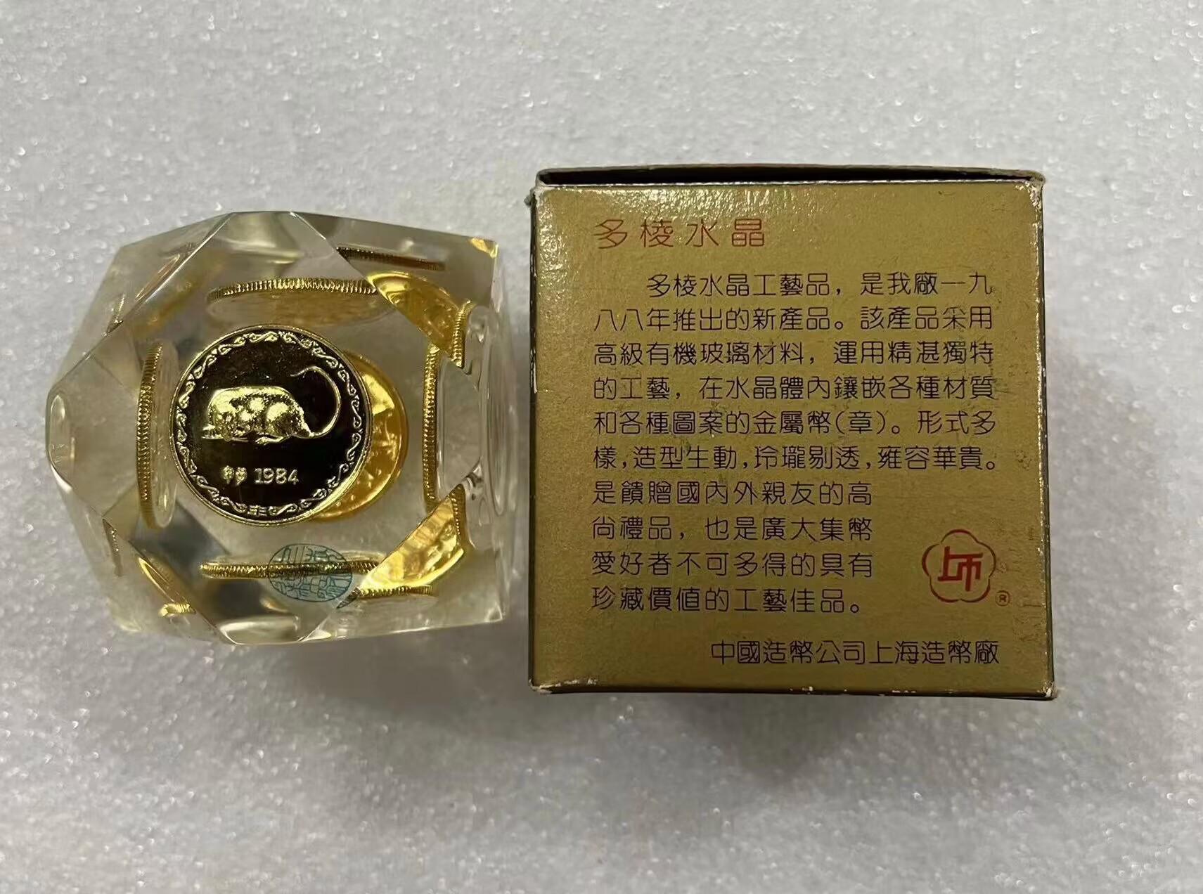 -- 1988年上海造币厂多棱水晶生肖纪念章