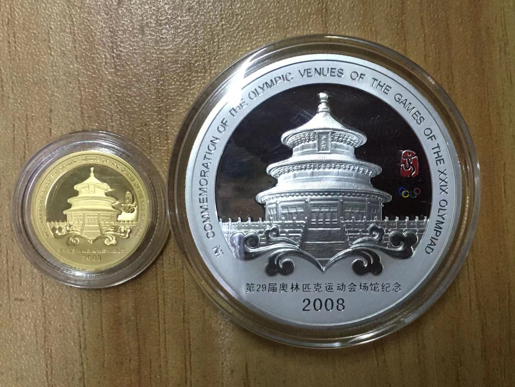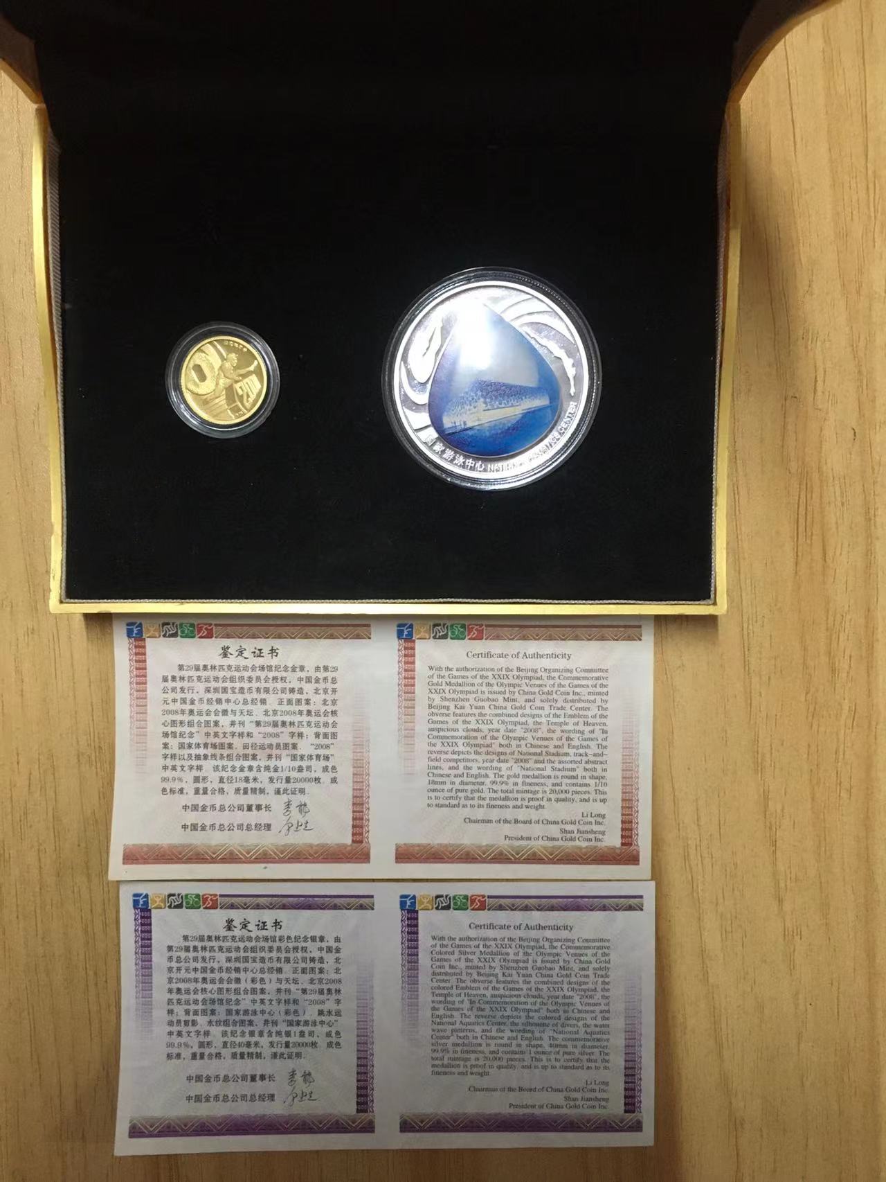 2008年金章含999纯金1/10盎司,银章含999纯银1盎司