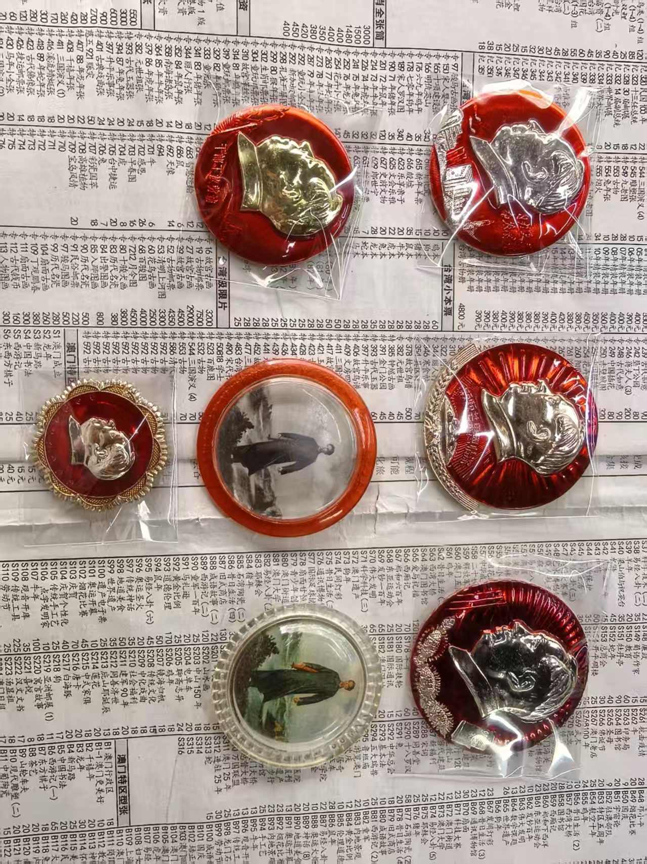 出7枚好品相章,直经上面6板50mm到60mm大的,黄彩小的40mm,品都非常好的,一起出200元不仪格