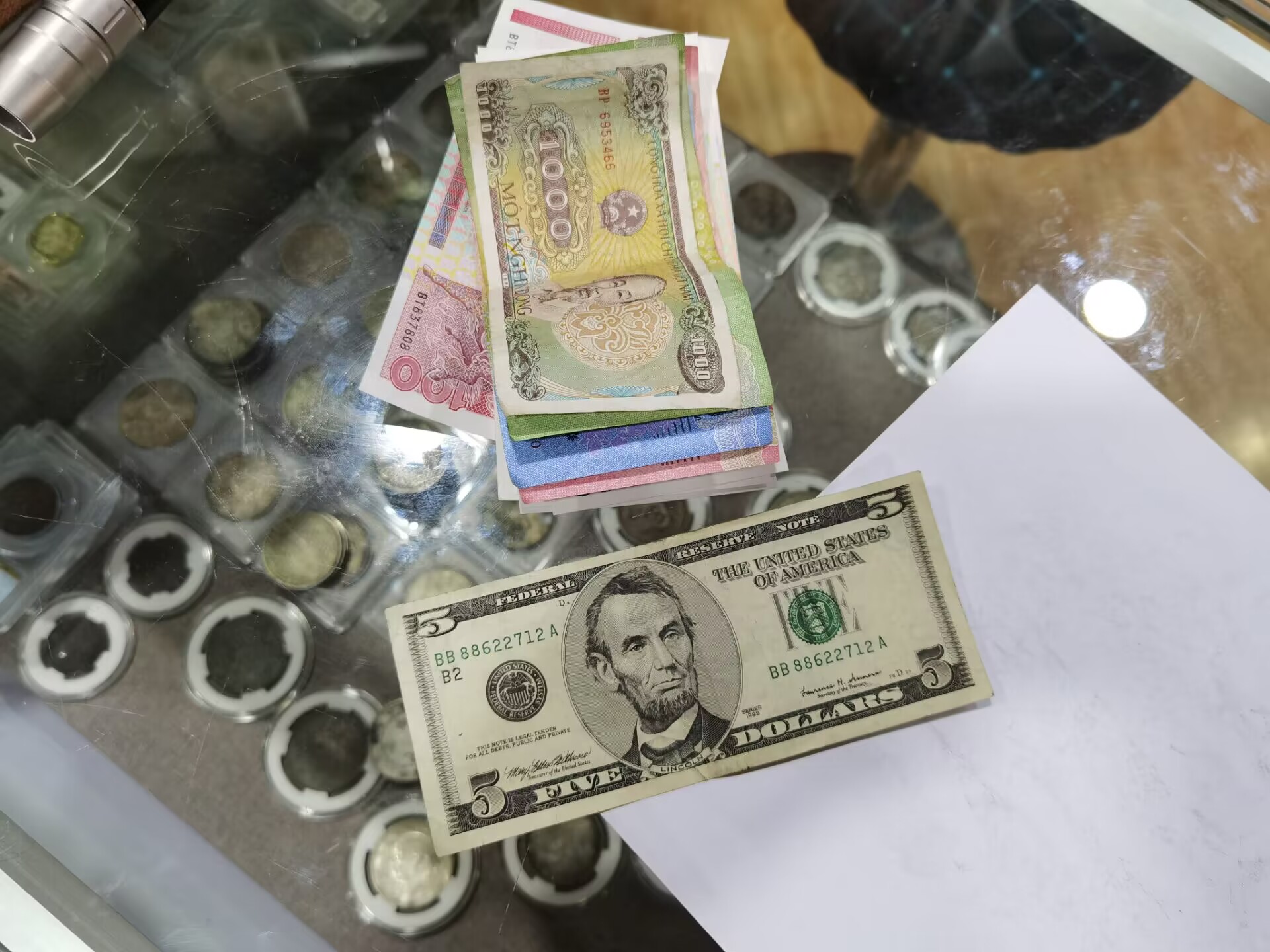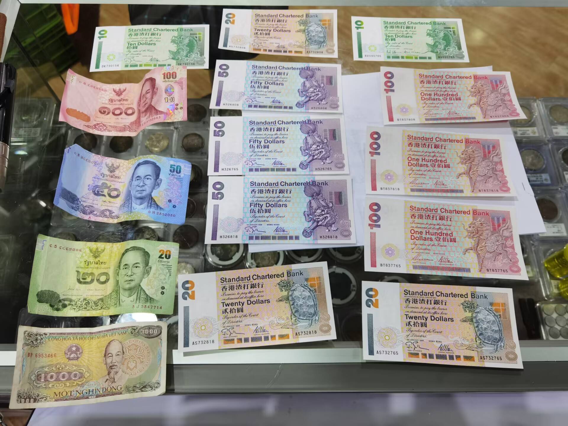 港币530+170泰铢+5美元+2张不知道的币