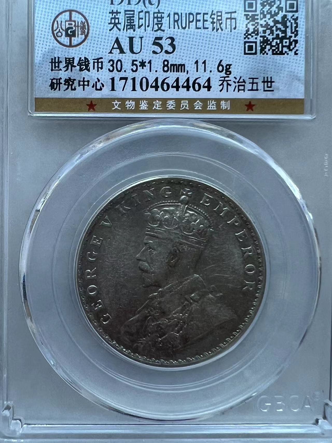 -- 公博AU53分 1919c乔治五世印度卢比银币168顺丰包邮
