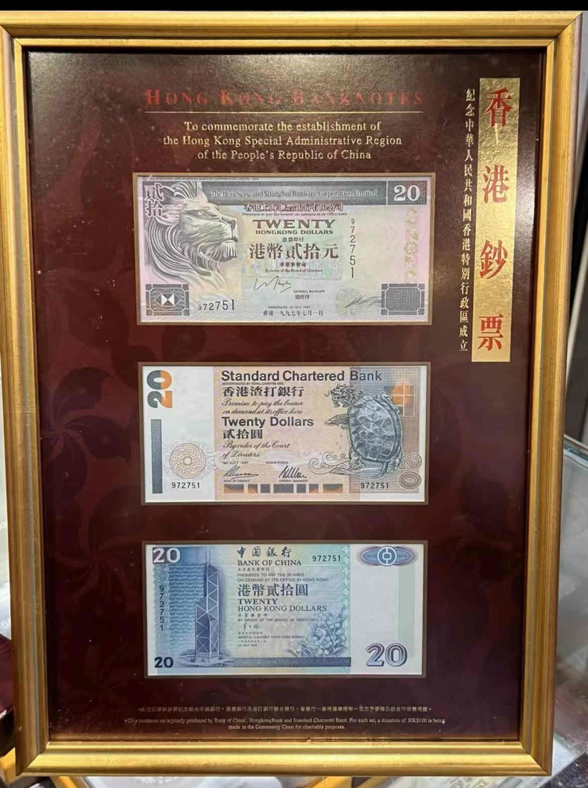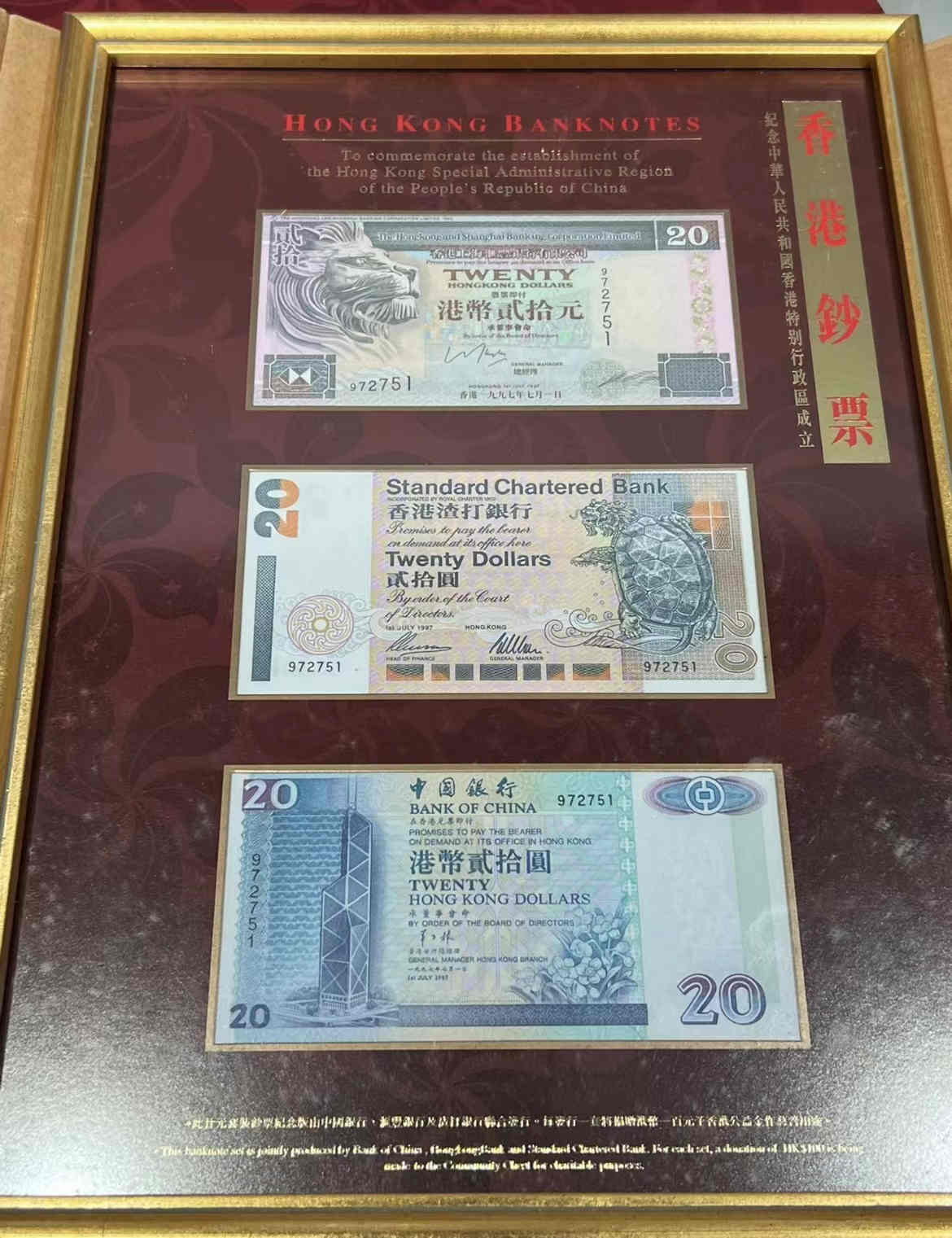 -- 97年香港中国银行,渣打银行,汇丰银行联合发行20元钞