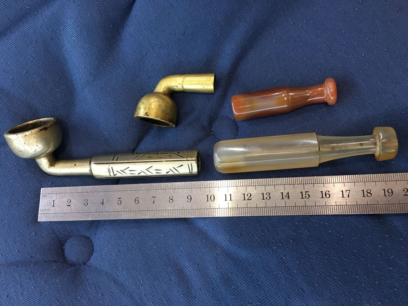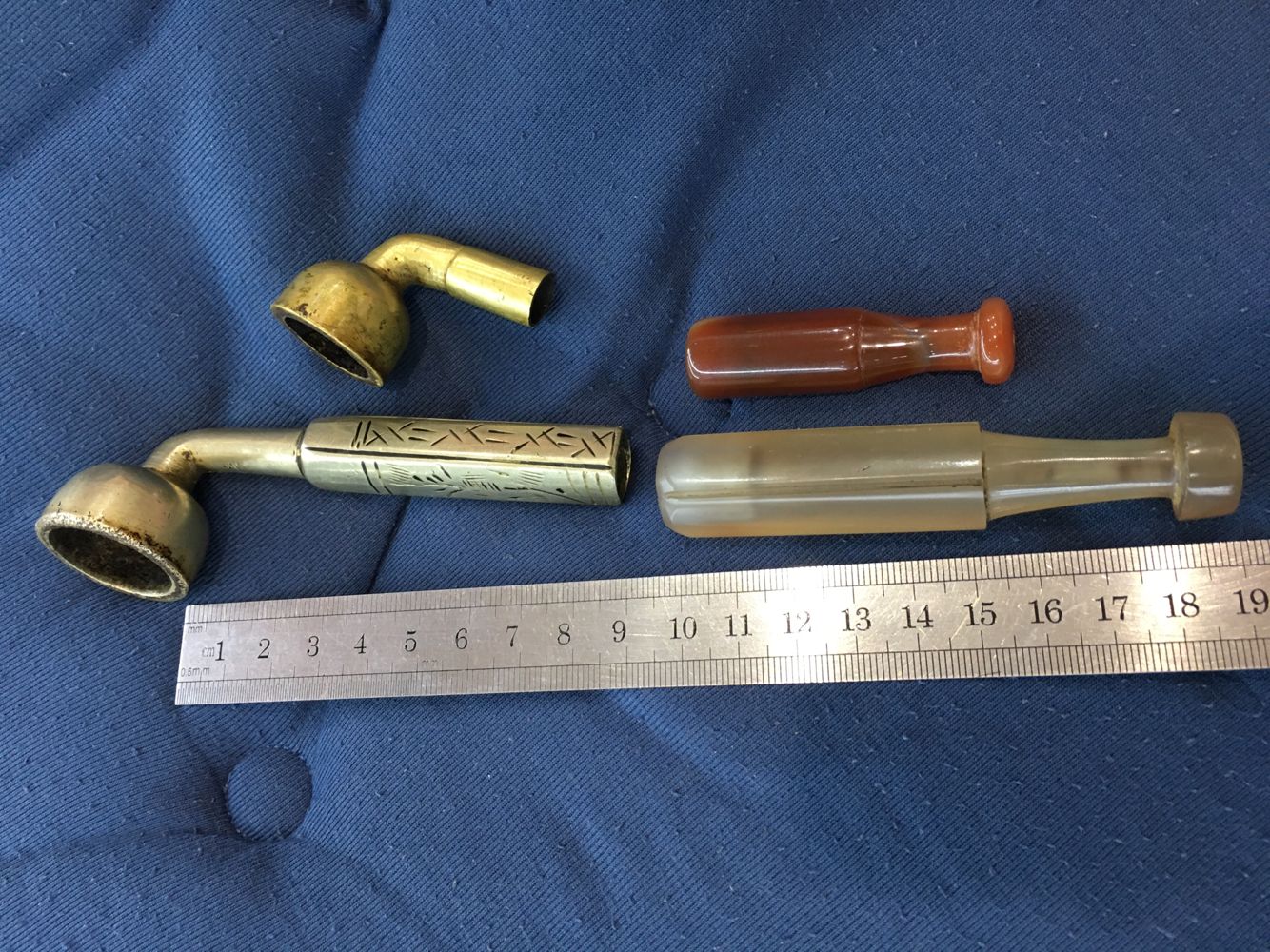 -- 售老玉石烟嘴铜烟袋锅