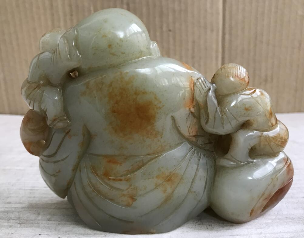 【招财玉佛】摆件一个、和田玉、质地细腻、润度好、品相完好、料大、手工雕刻、年代不详、镇宅、招财、辟邪、保平安、重953克左右、高10.5cm长14.5cm厚5cm左右,实价出1800元