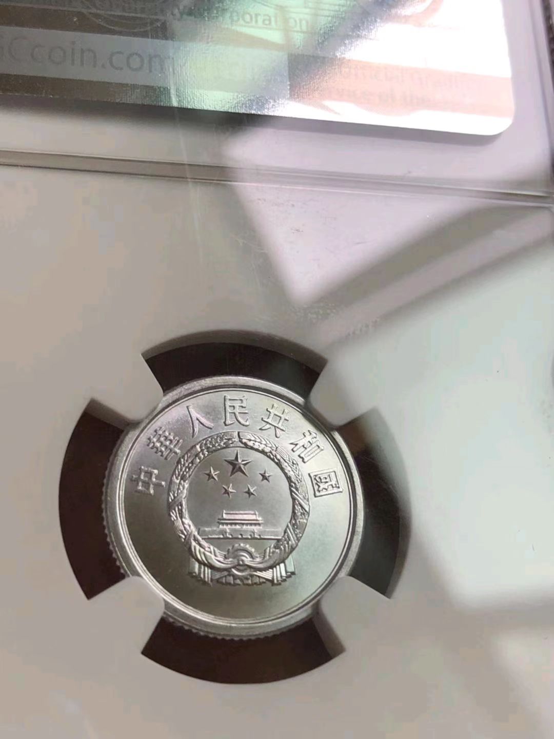 801 MS67 无砖、双镜面,民共相连,稀少版别,国徽面看上去的小点是铸痕,不是黑点。