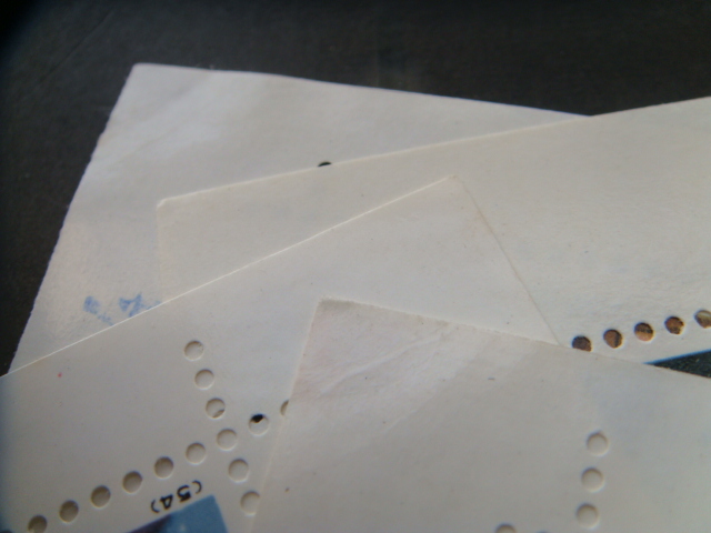大角边原胶54.55.56纸边有极轻微黄.纸边有软折。带边的原胶全品