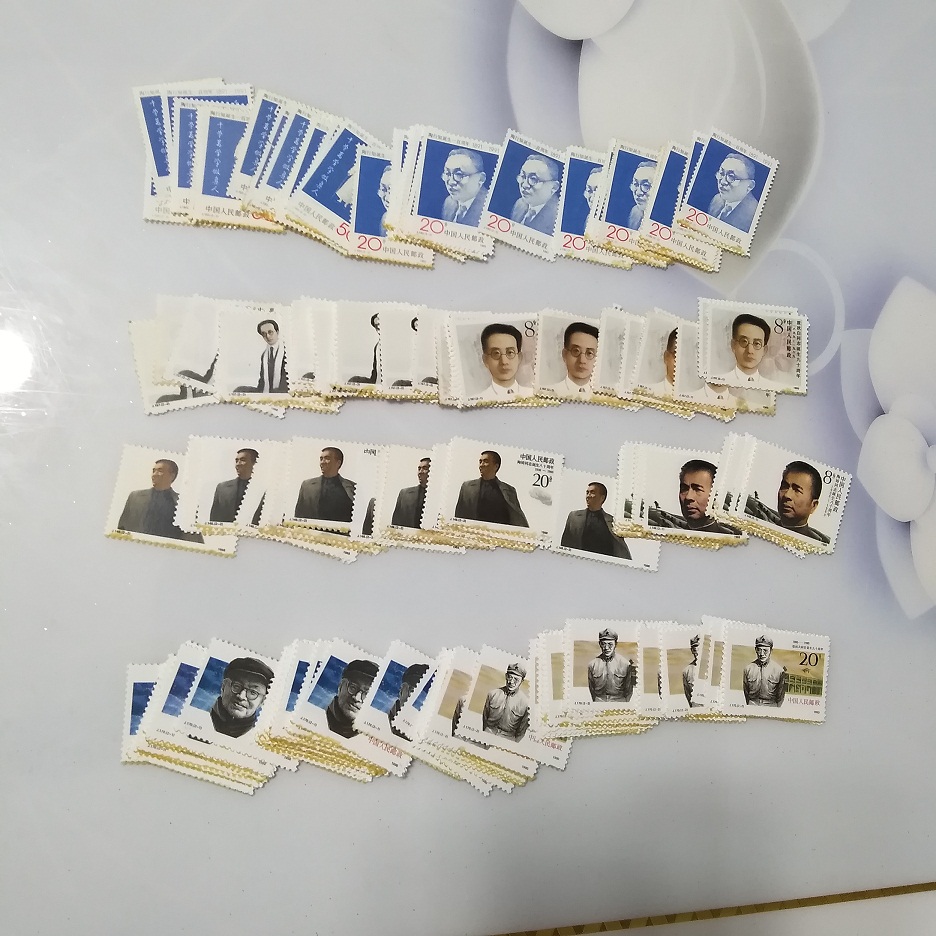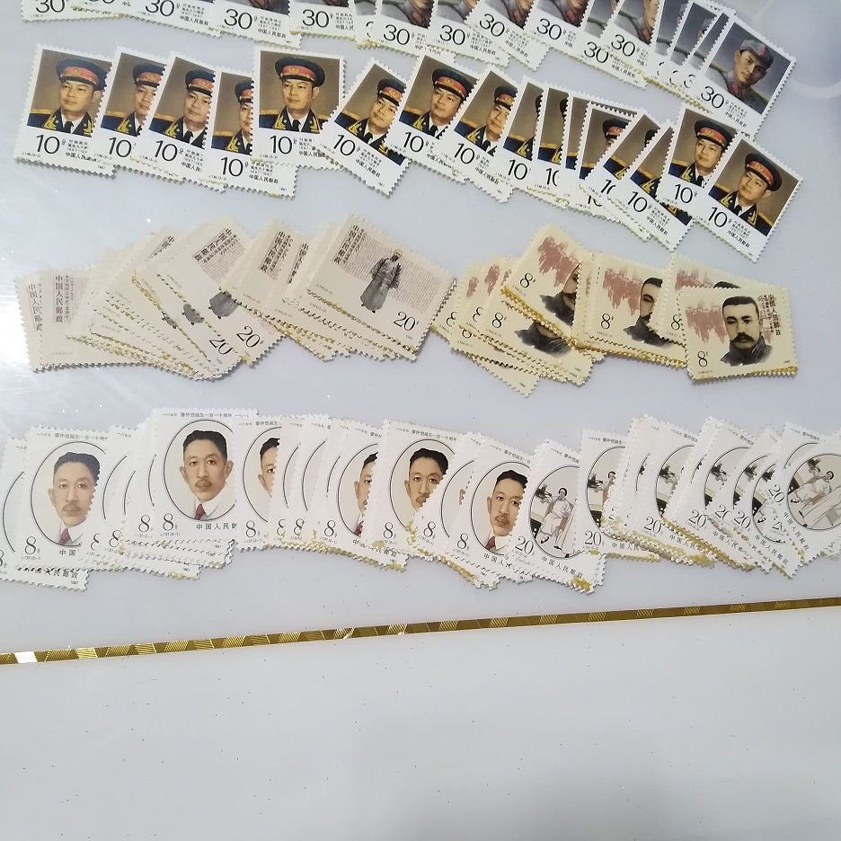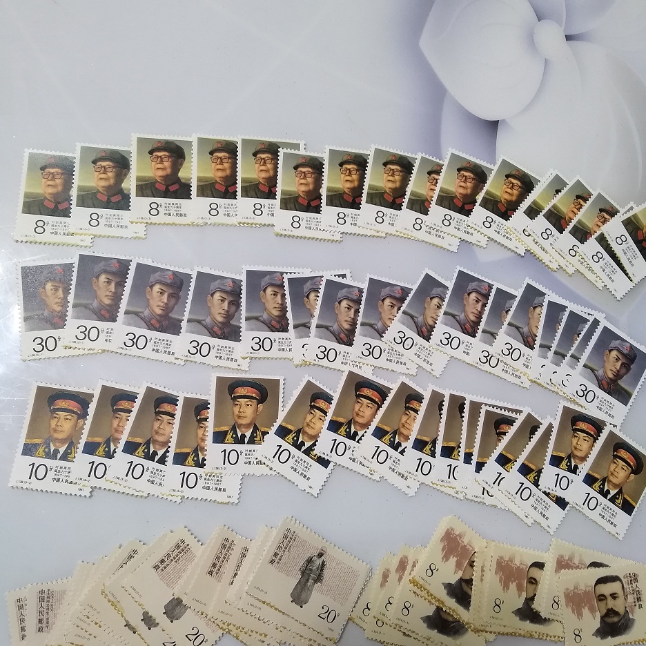 87年叶剑英17套下边齿轻微粘胶无缺角 89年李大钊31套----------89年瞿秋白29套 88年陶铸32套--------------87年廖仲恺26套 90年张闻天40套----------91年陶行知25套 以上产品册拆出有粘胶,极少数缺角, 处理价没退换的 共售450元包邮