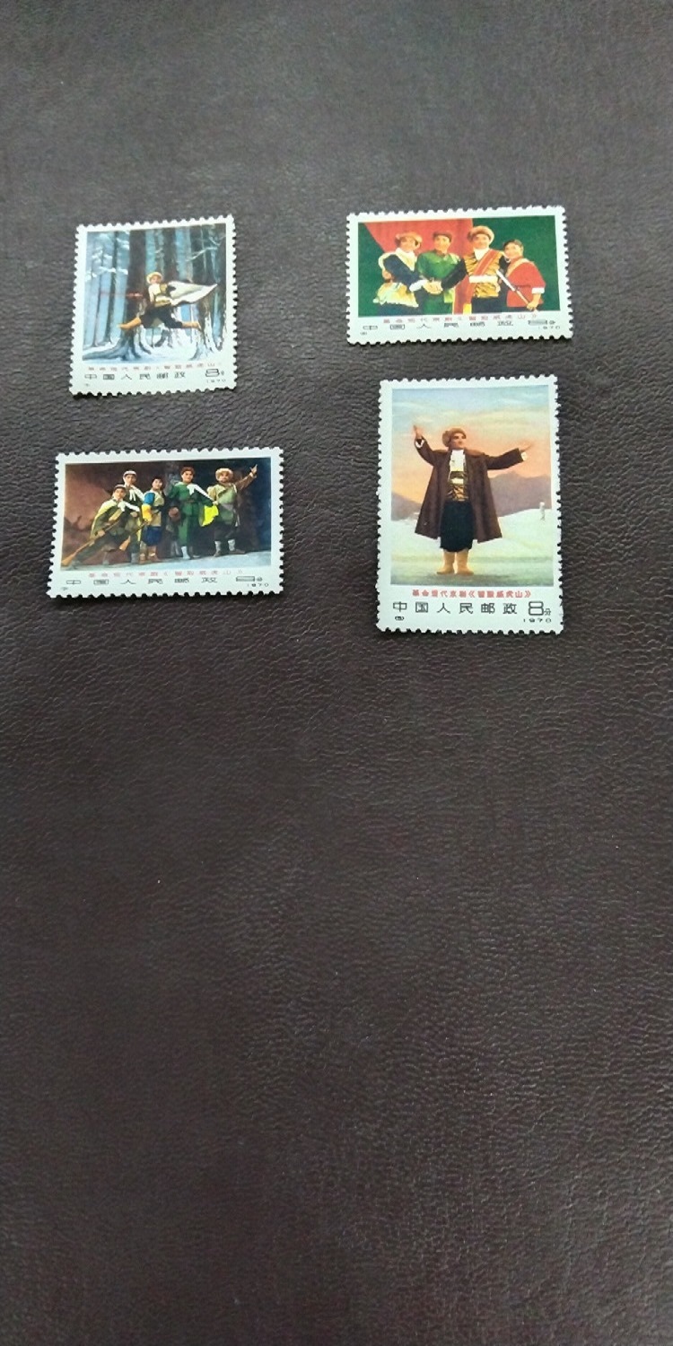 巴黎公社11,22分四枚,售价115元,智取威虎山,原胶全品,深山问苦8枚,单价33元/枚,穿林海,深山问苦,胸有朝阳,胜利会师,四枚一组,共计一组,售价350元,胸有朝阳2枚,一枚带边,有一枚铭版,原胶全品,一起出,售价150元,