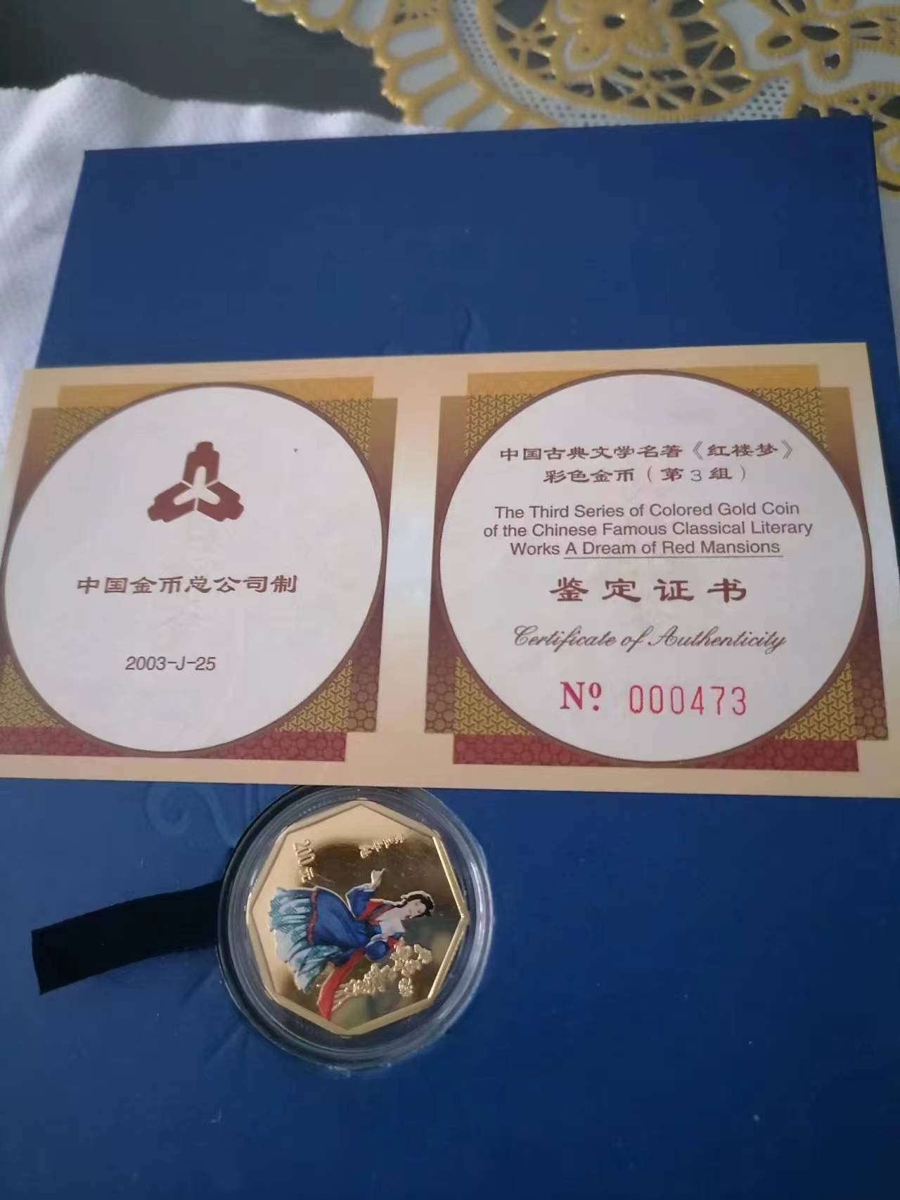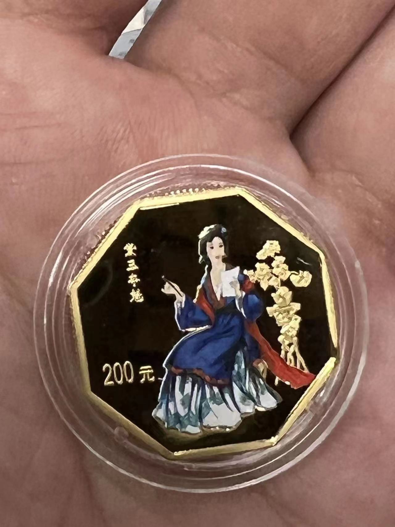 彩金黛玉夺魁2枚,证书原包装齐全,币高倍放大镜下有极轻微划痕,每枚21500元。