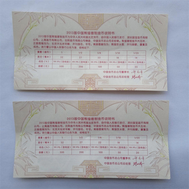 是13年10分之1熊猫金币2枚,证书,加币盆。