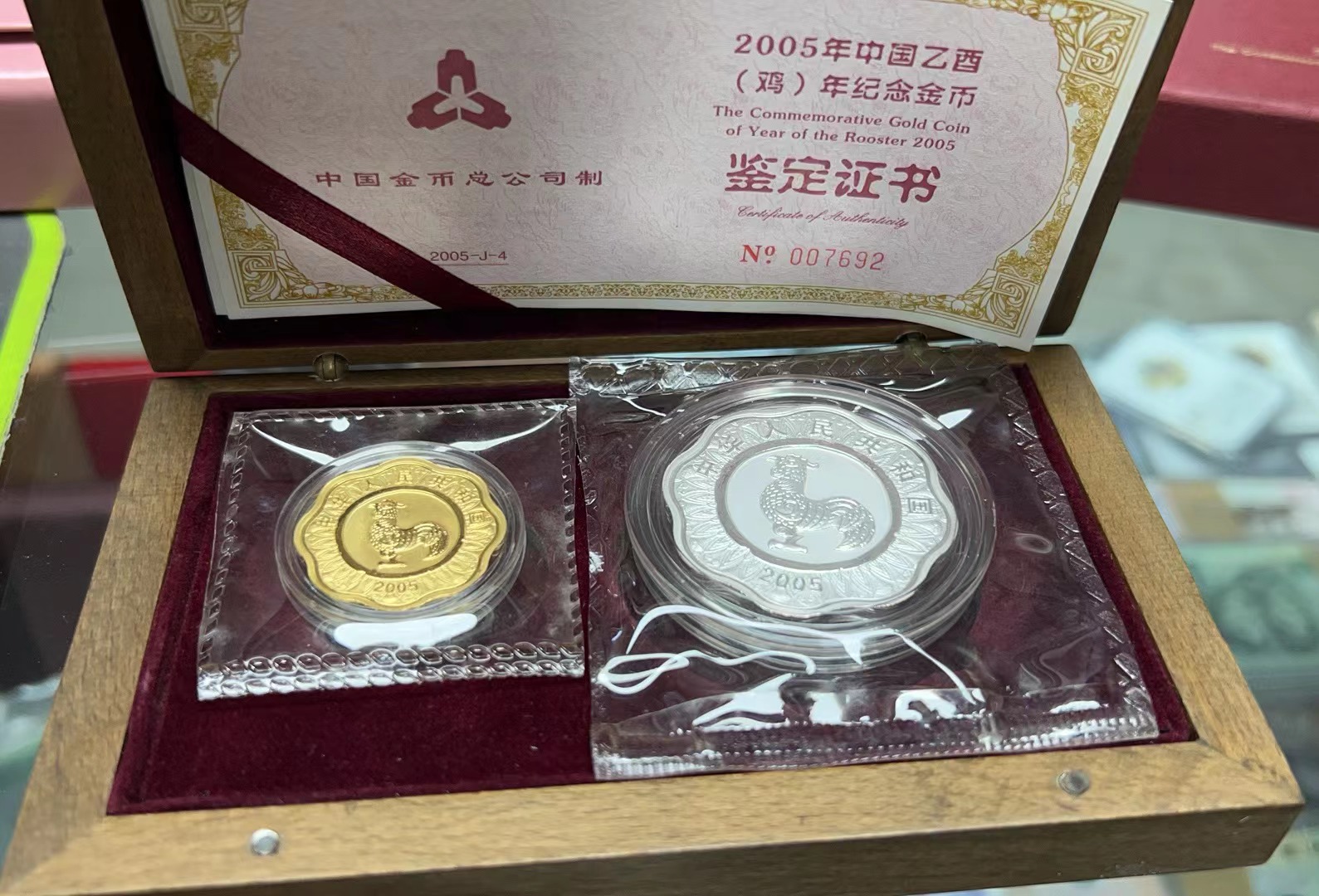 | -- 作者:仙子 -- 发布时间:2023/6/16 14:26:00 -- [原创]售05年梅花金银鸡 低售05年梅花本金银鸡一套 原盒原证书,7880元 |