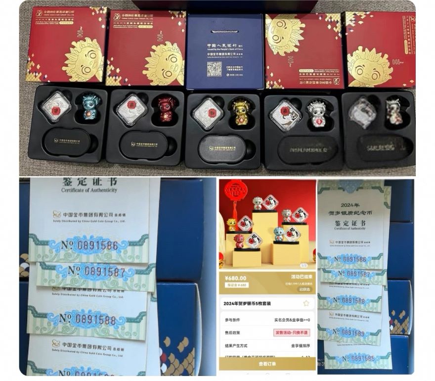 -- 出一套2024年3元贺岁五福龙.证书五连无347含尾88