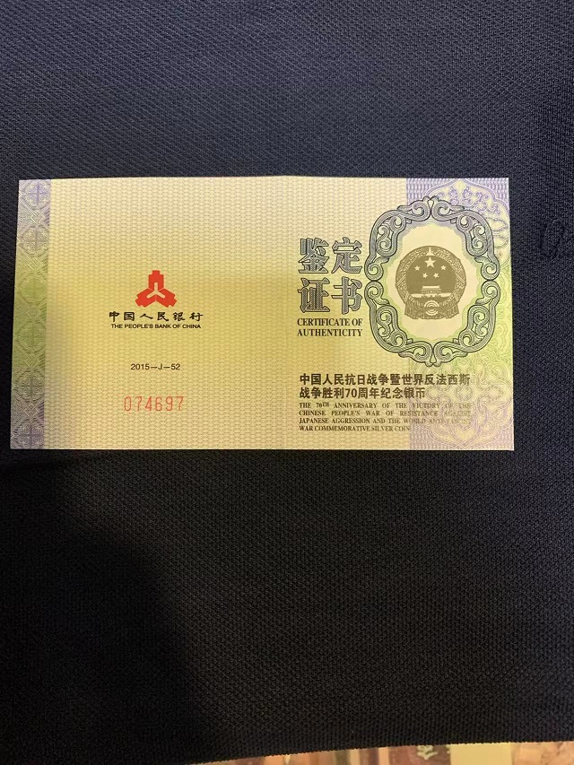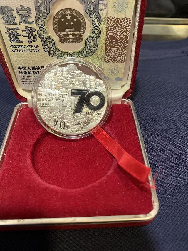 售抗战70周年银币1枚,品相如图,无原盒,680元包邮。不常在线,确认后加微信。