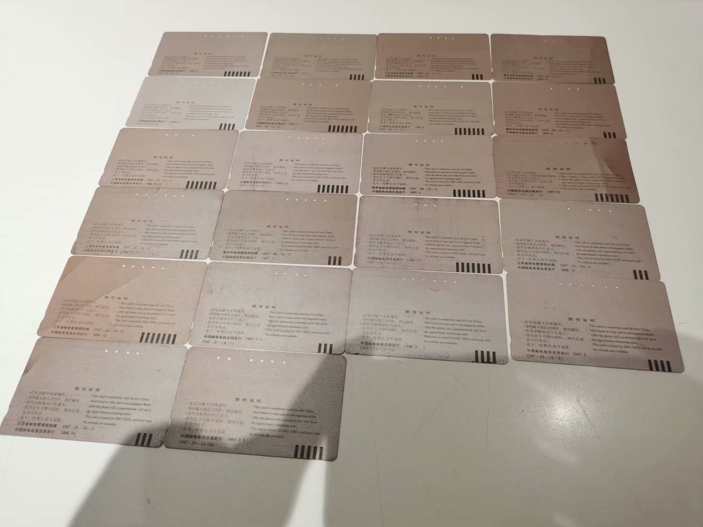 >> 通用类田村卡、地方类田村卡、通用IC卡、地方IC卡、还有九十年代和地方田村卡同期使用的各 卡种联机卡,具体有:亚斯康制式(1985年中国最早开通电话卡的深圳绿箭电话卡就是该制式),英国GPT制式(深圳89十景珍卡就是该制 式),太科卡(各省市邮电管理局、市县邮电局都有发行)、还有少许地方用到的诸如黑龙江使用的韩国薄卡、山西ID卡。