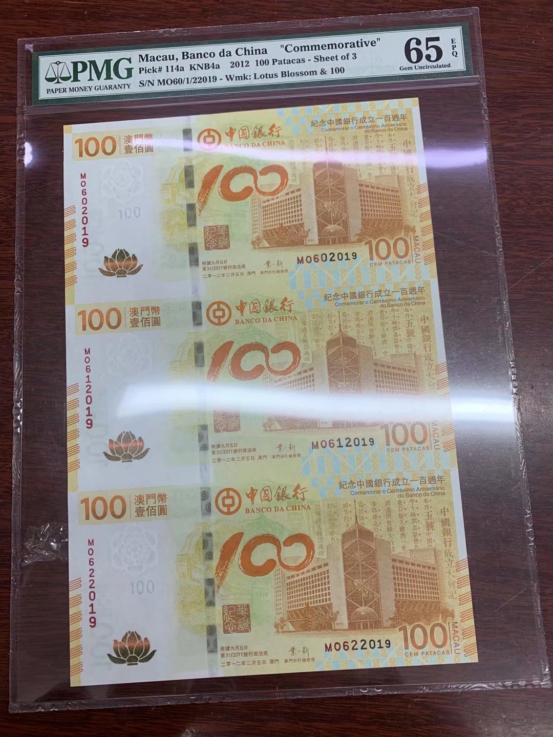 → 出售,PMG荷花钞三连体,无347,2019年
